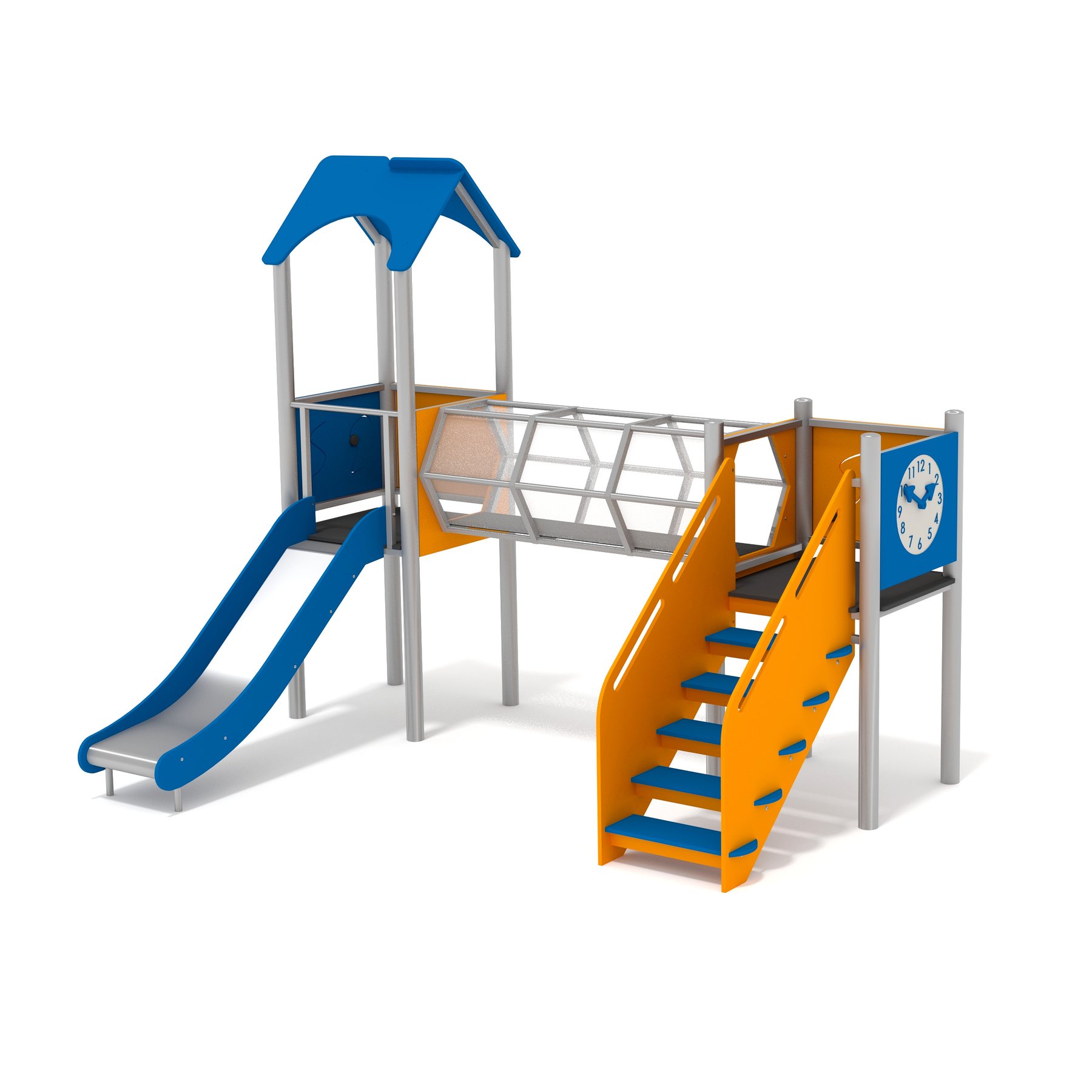 Lekställning Aluel är utvecklad för lekplatser, skolor, förskolor, parker och bostadsgårdar och anpassad för daglig användning där slitstyrka, säkerhet och låg underhållsnivå är viktiga krav. Den är utformad med tunnel, rutschbana och klockpanel för att skapa en tydlig och funktionell användning. Konstruktionen i rostfritt stål, HDPE och polyesterrep bidrar till lång livslängd och gör produkten lämplig för utomhusbruk året om. Den stödjer aktiviteter som klättring, krypning, rutschlek, fysisk aktivitet och motorik, vilket gör den till ett funktionellt inslag i miljöer där rörelse, lek eller träning står i fokus. Rekommenderat underlag är gummiplattor, grus och gräs.