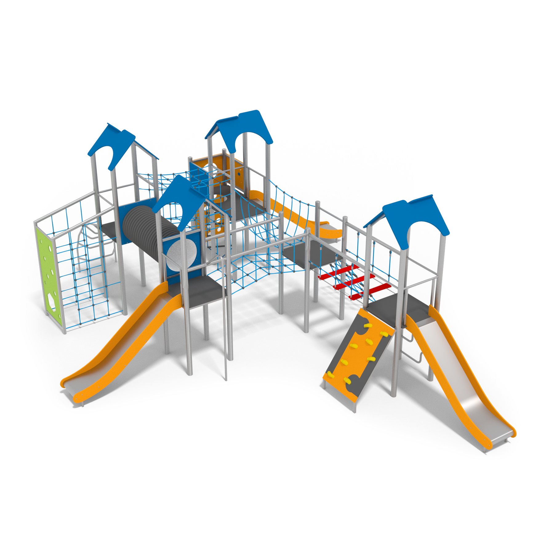 Lekställning Aluis är utvecklad för lekplatser, skolor, förskolor, parker och bostadsgårdar och anpassad för daglig användning där slitstyrka, säkerhet och låg underhållsnivå är viktiga krav. Den är utformad med klättervägg, repladder, tunnel och rutschbana för att skapa en tydlig och funktionell användning. Konstruktionen i rostfritt stål, HDPE och polyesterrep bidrar till lång livslängd och gör produkten lämplig för utomhusbruk året om. Den stödjer aktiviteter som klättring, krypning, rutschlek, fysisk aktivitet och motorik, vilket gör den till ett funktionellt inslag i miljöer där rörelse, lek eller träning står i fokus. Rekommenderat underlag är gummiplattor och grus.