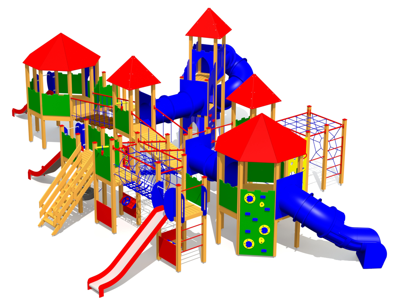 Mycket stor och variationsrik lekställning som erbjuder omfattande klättring, balanslek och fantasifullt samspel.