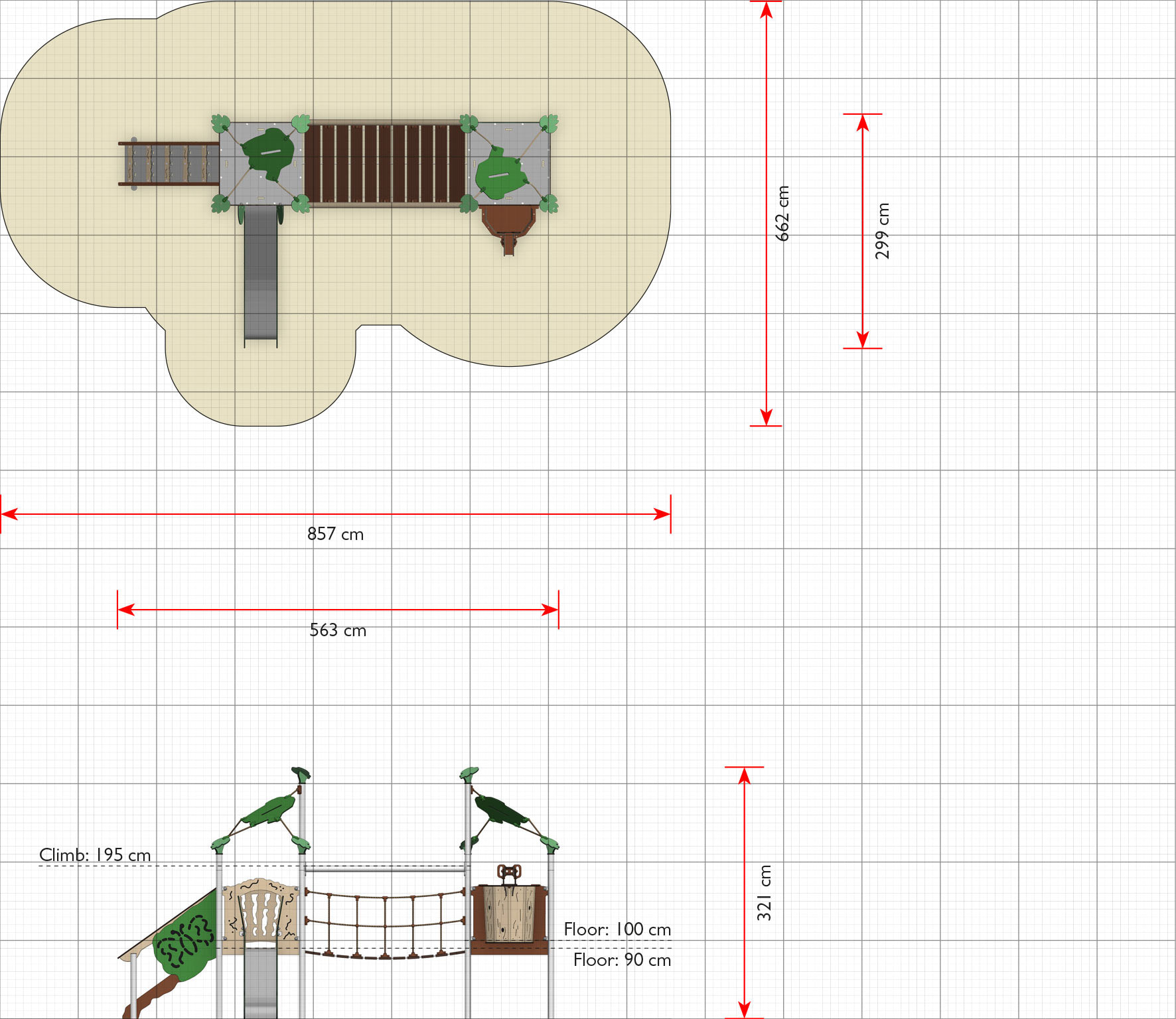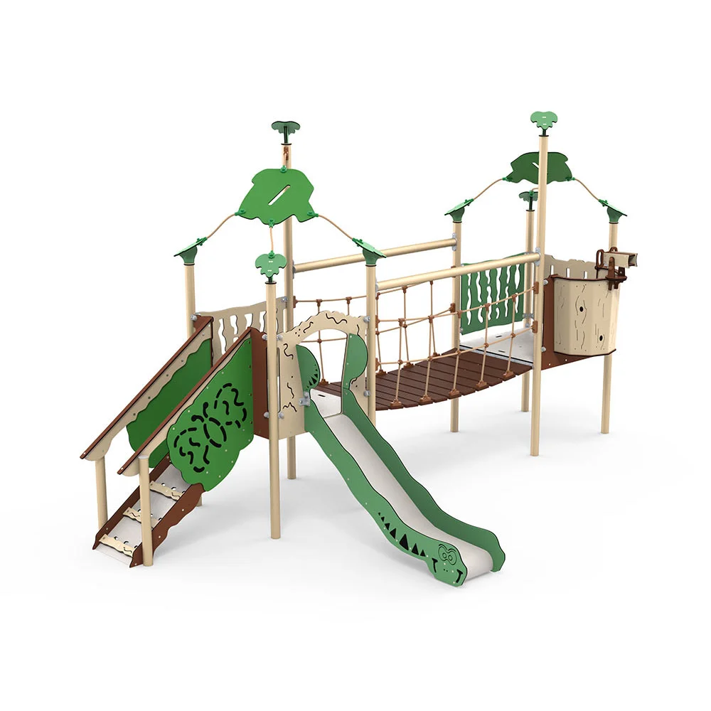 Lekställning Anquin är utvecklad för lekplatser där barn behöver varierade utmaningar i samma produkt. Den kombinerar lekvärde med robust konstruktion och uppmuntrar till klättring, balans och social lek. Produkten passar väl i förskola, skola och parkmiljö där hög användning ställer krav på kvalitet och driftsäkerhet. Mått (L x B x H): 563 cm x 300 cm x 321 cm. Max fallhöjd: 100 cm. Rekommenderad ålder: Från 2 år.
