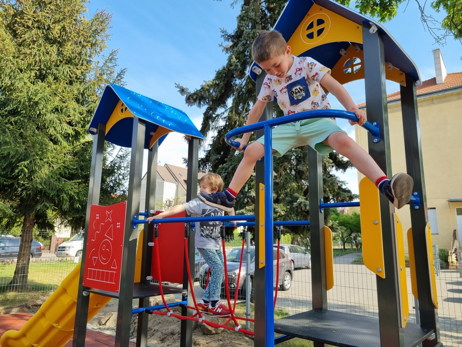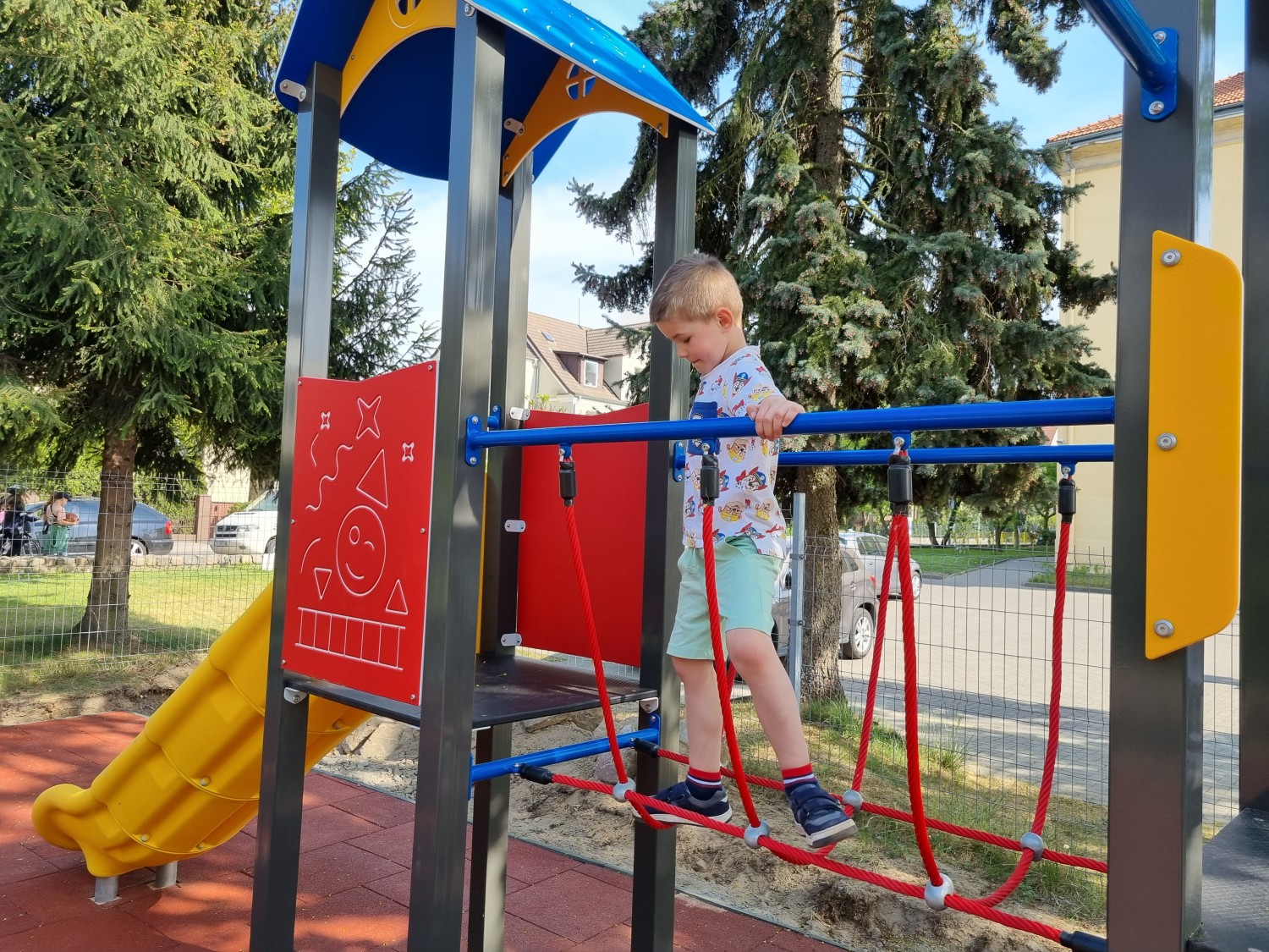 Konstruktion consistsrör med en square profil. Plattform Gjord av HPL material. Walls Gjord av HDPE material med en tjocklek 1 2 mm. A slide is Gjord av colorful, hållbart PE material that does not heat up. Nuts och washers are Gjord av rostfritt stål. Rope bridge Gjord av 1 6 mm polypropylene rope med en stål core.