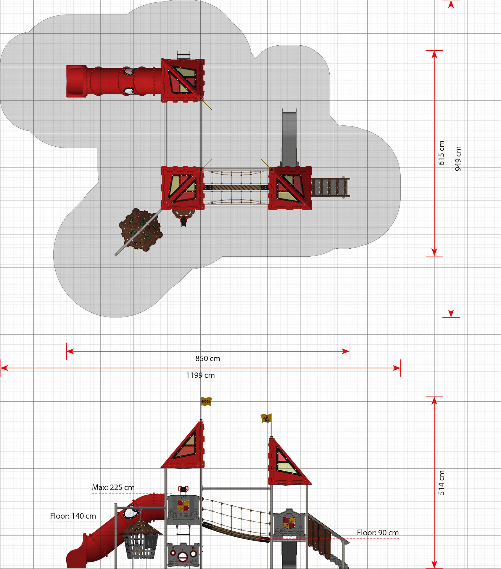 Lekställning Baxel är utvecklad för lekplatser där barn behöver varierade utmaningar i samma produkt. Den kombinerar lekvärde med robust konstruktion och uppmuntrar till klättring, balans och social lek. Produkten passar väl i förskola, skola och parkmiljö där hög användning ställer krav på kvalitet och driftsäkerhet. Mått (L x B x H): 850 cm x 615 cm x 498 cm. Max fallhöjd: 225 cm. Rekommenderad ålder: Från 2 år.