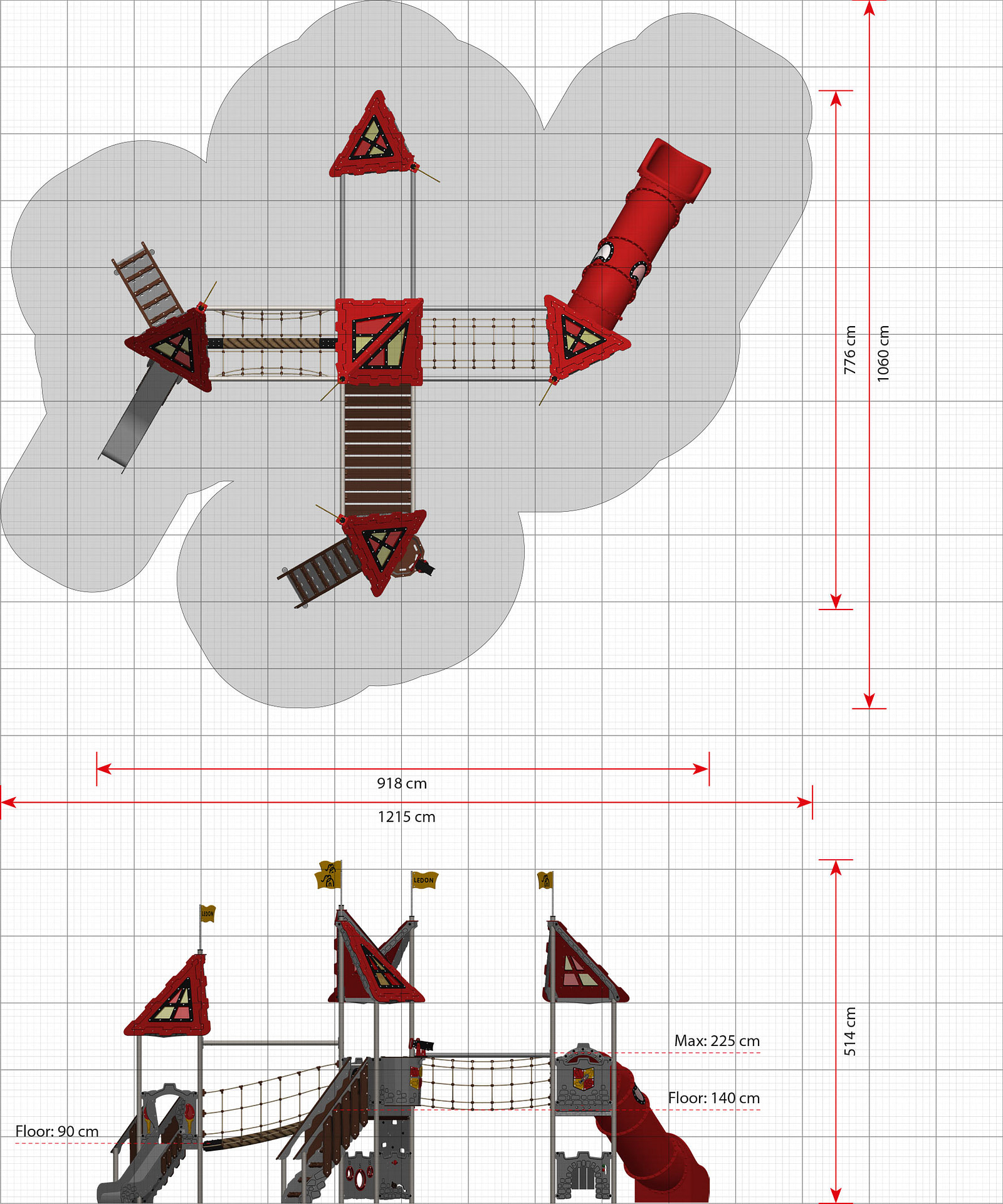 Lekställning Dana är utvecklad för lekplatser där barn behöver varierade utmaningar i samma produkt. Den kombinerar lekvärde med robust konstruktion och uppmuntrar till klättring, balans och social lek. Produkten passar väl i förskola, skola och parkmiljö där hög användning ställer krav på kvalitet och driftsäkerhet. Mått (L x B x H): 918 cm x 776 cm x 498 cm. Max fallhöjd: 225 cm. Rekommenderad ålder: Från 3 år.