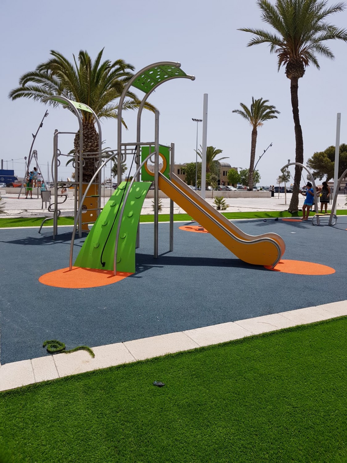 Lekställning DOMO 2-2 för offentlig utemiljö med fokus på säker användning, robust konstruktion och lång livslängd vid daglig drift. Material: rostfritt stål och HPL.