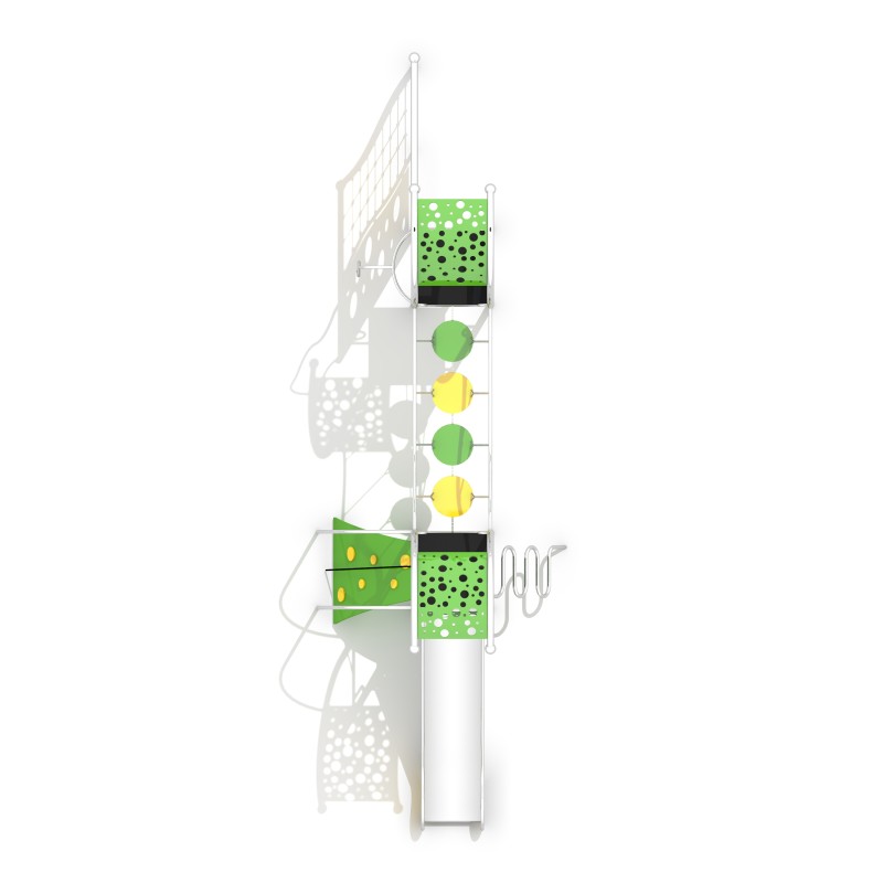 Konstruktion och slide Gjord av stainelss stål resistant to väderförhållanden och intensive use. Wheels, roofs, bridge, climbing vägg, sideslide och entrance ramp Gjord av HDPE material.