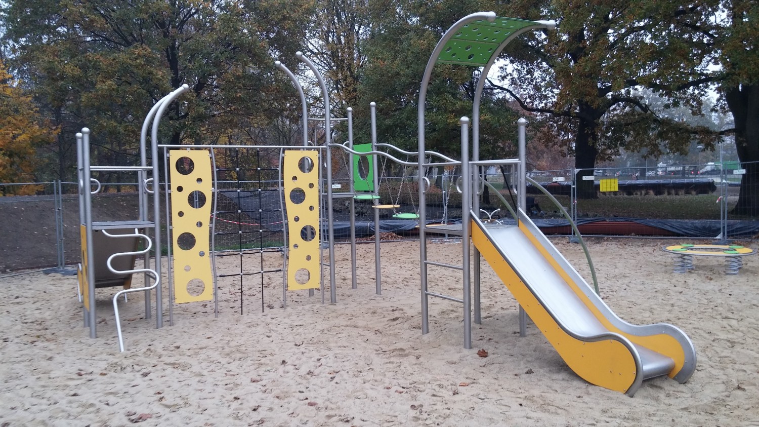 Lekställning DOMO 3-1 för offentlig utemiljö med fokus på säker användning, robust konstruktion och lång livslängd vid daglig drift. Material: rostfritt stål och HPL.