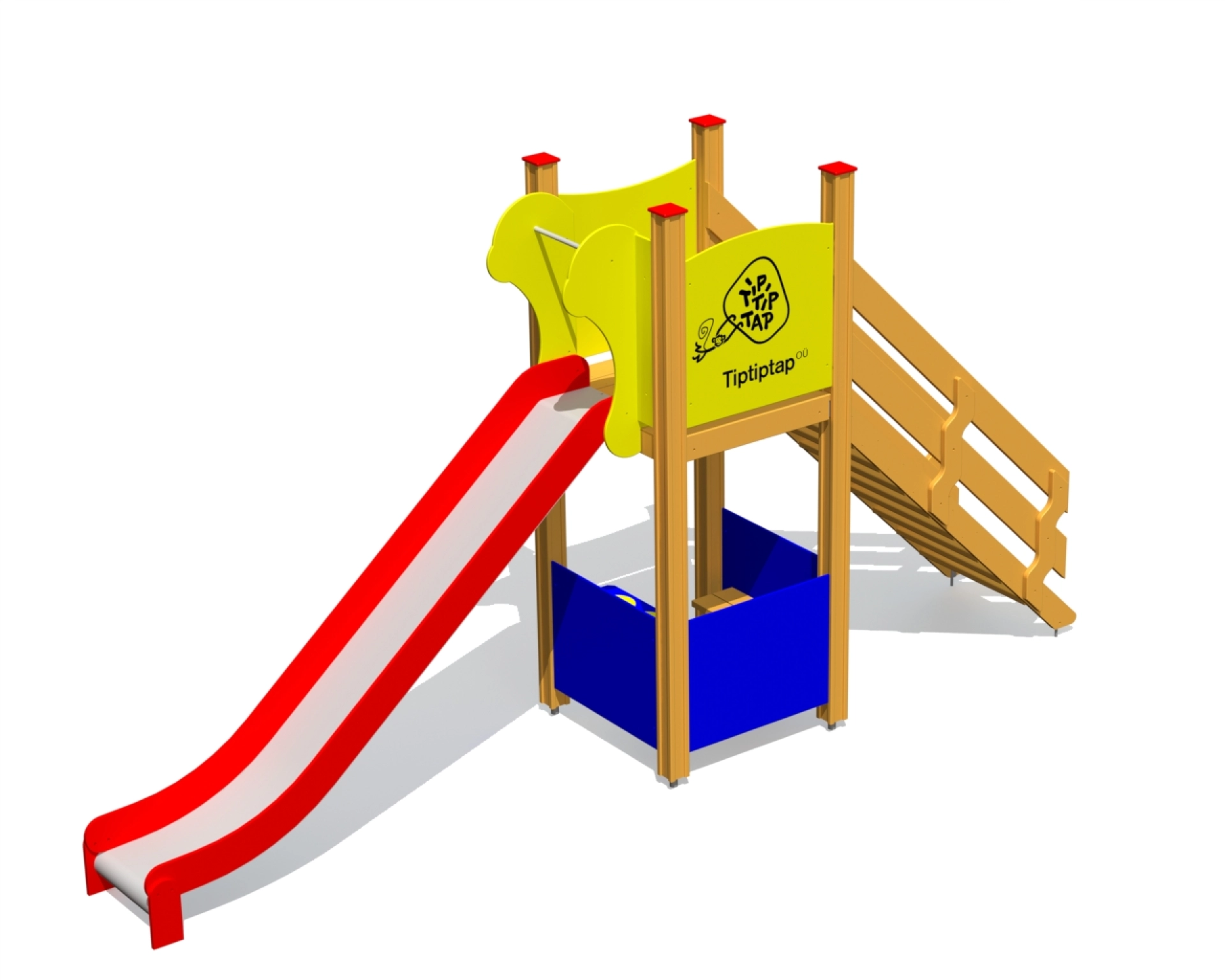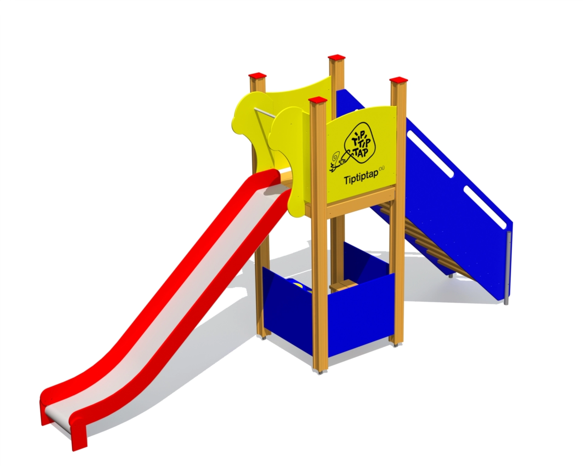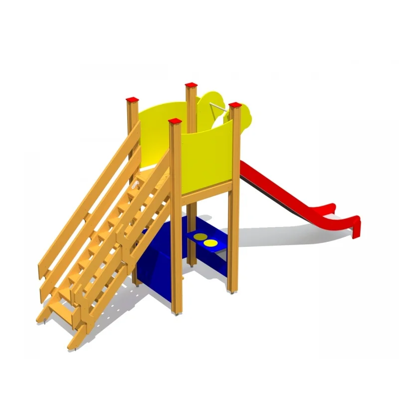 Kompakt och lättillgänglig lekställning med rutschkana, plattform och rolleksfunktioner. Perfekt för lekplatser där trygg, fantasifull lek står i fokus.