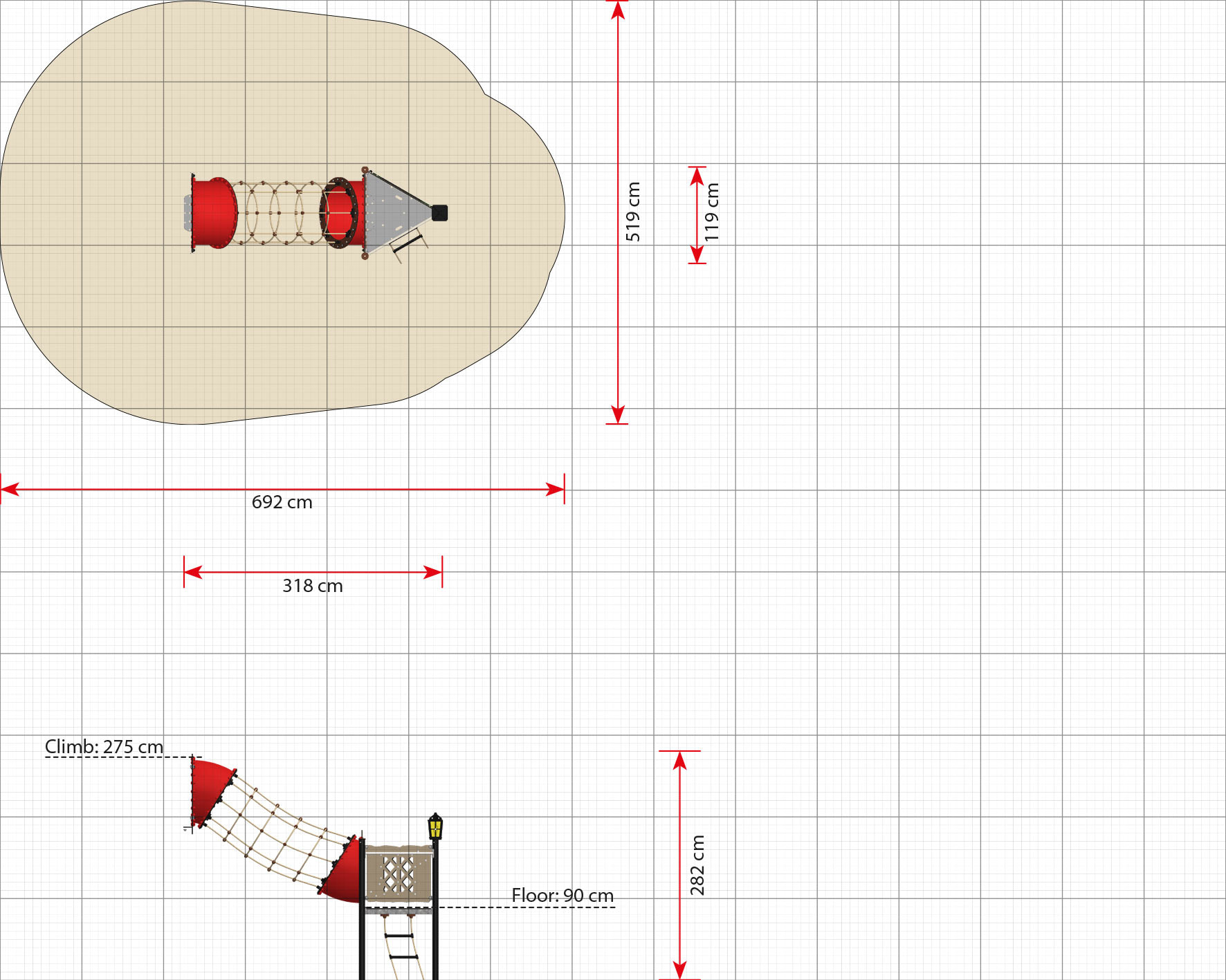 Lekställning Fakel är utvecklad för lekplatser där barn behöver varierade utmaningar i samma produkt. Den kombinerar lekvärde med robust konstruktion och uppmuntrar till klättring, balans och social lek. Produkten passar väl i förskola, skola och parkmiljö där hög användning ställer krav på kvalitet och driftsäkerhet. Mått (L x B x H): 318 cm x 119 cm x 282 cm. Max fallhöjd: 275 cm. Rekommenderad ålder: Från 3 år.