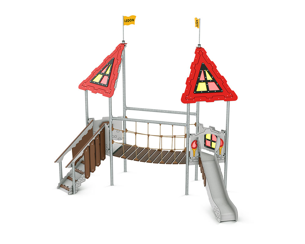 Lekställning Fequin är utvecklad för lekplatser där barn behöver varierade utmaningar i samma produkt. Den kombinerar lekvärde med robust konstruktion och uppmuntrar till klättring, balans och social lek. Produkten passar väl i förskola, skola och parkmiljö där hög användning ställer krav på kvalitet och driftsäkerhet. Mått (L x B x H): 501 cm x 288 cm x 448 cm. Max fallhöjd: 100 cm. Rekommenderad ålder: Från 2 år.