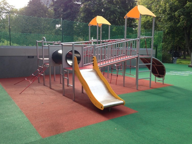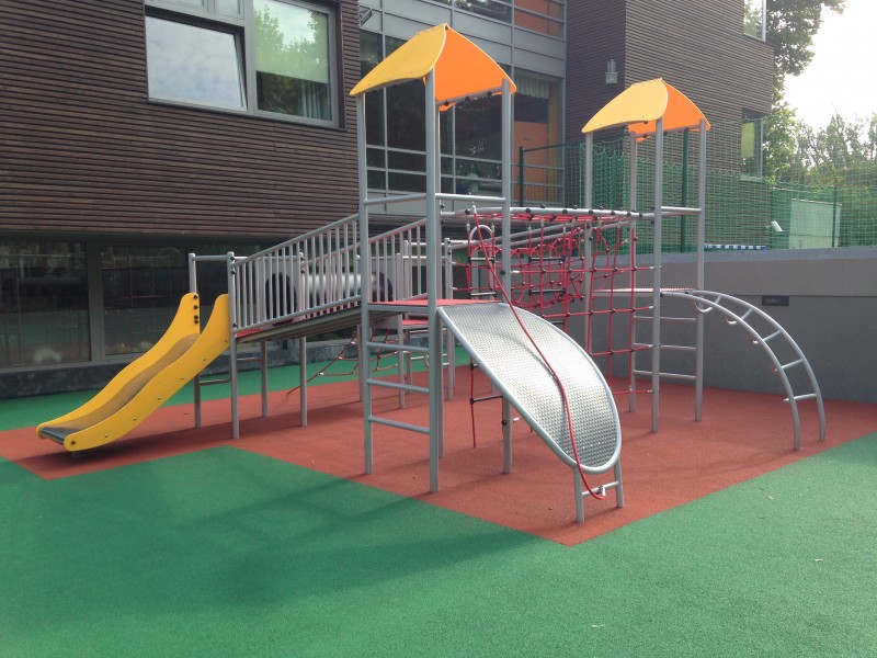 Lekställning GERBERA för offentlig utemiljö med fokus på säker användning, robust konstruktion och lång livslängd vid daglig drift. Material: rostfritt stål och pulverlackerat stål.