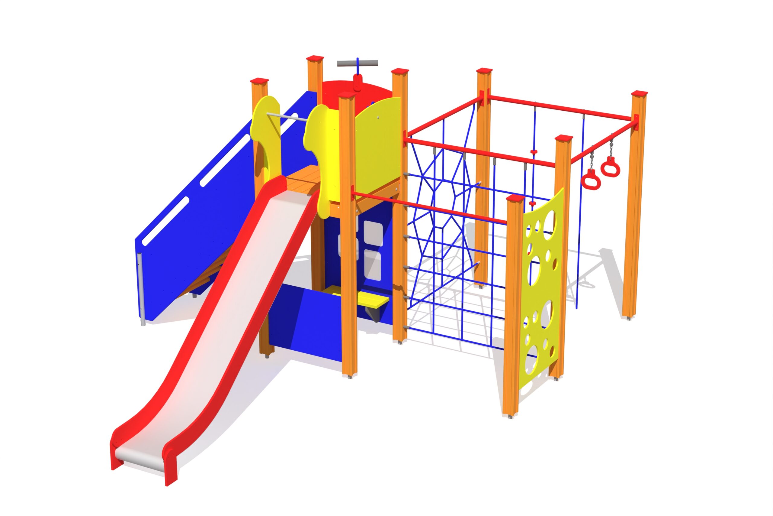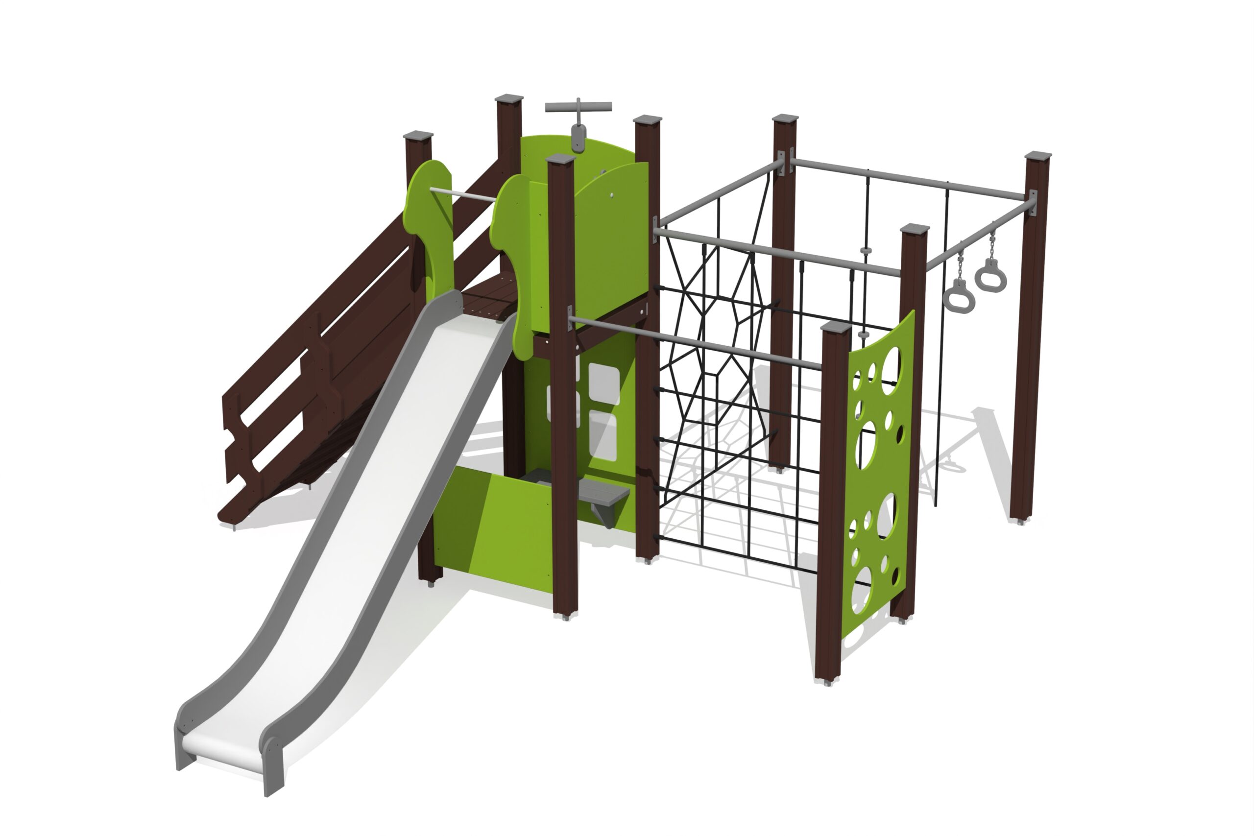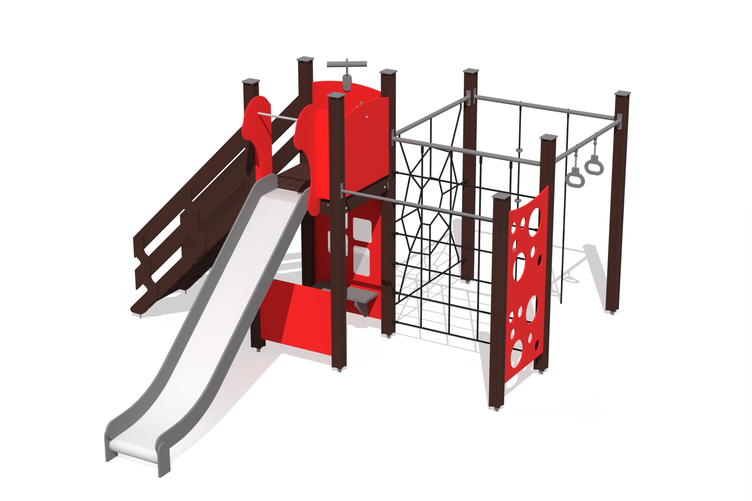Produkten är utvecklad för lekplatser, förskolegårdar och andra offentliga utemiljöer där utrustningen behöver tåla regelbunden användning över tid. Modellen kombinerar flera lekmoment och ger barn möjlighet till varierad aktivitet, samspel och motorisk utveckling. Mått enligt specifikation: cirka 4,81 x 3,92 x 2,51 m. Rekommenderad ålder: 1+. En hållbar lösning för långsiktig drift och trygg användning i offentlig utemiljö.
