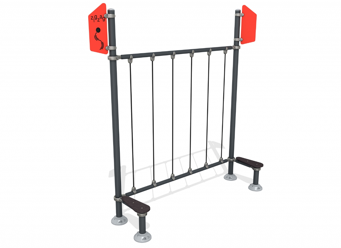 Lekställning Ilela i metallprofil, HDPE och HPL för offentlig miljö.