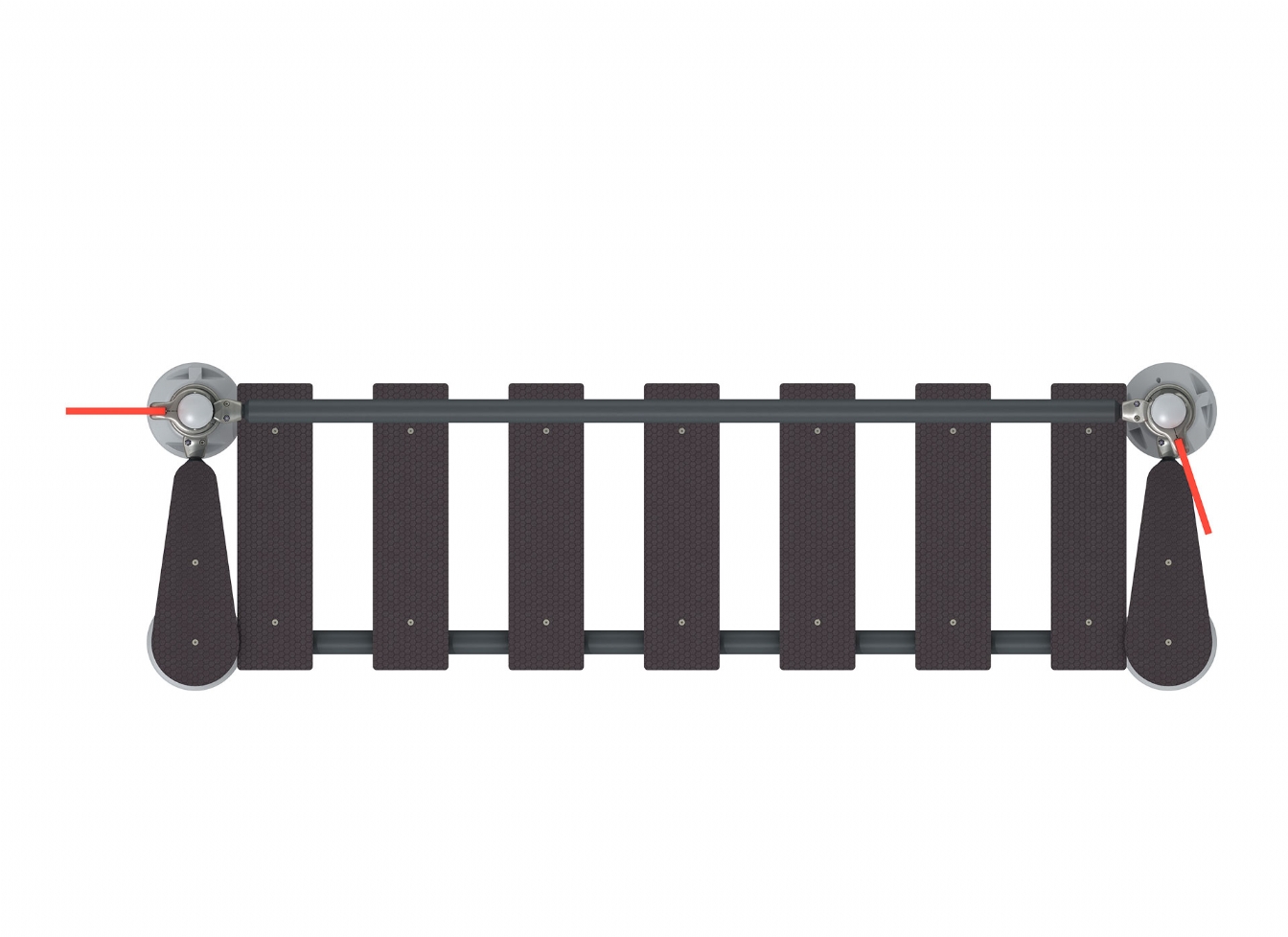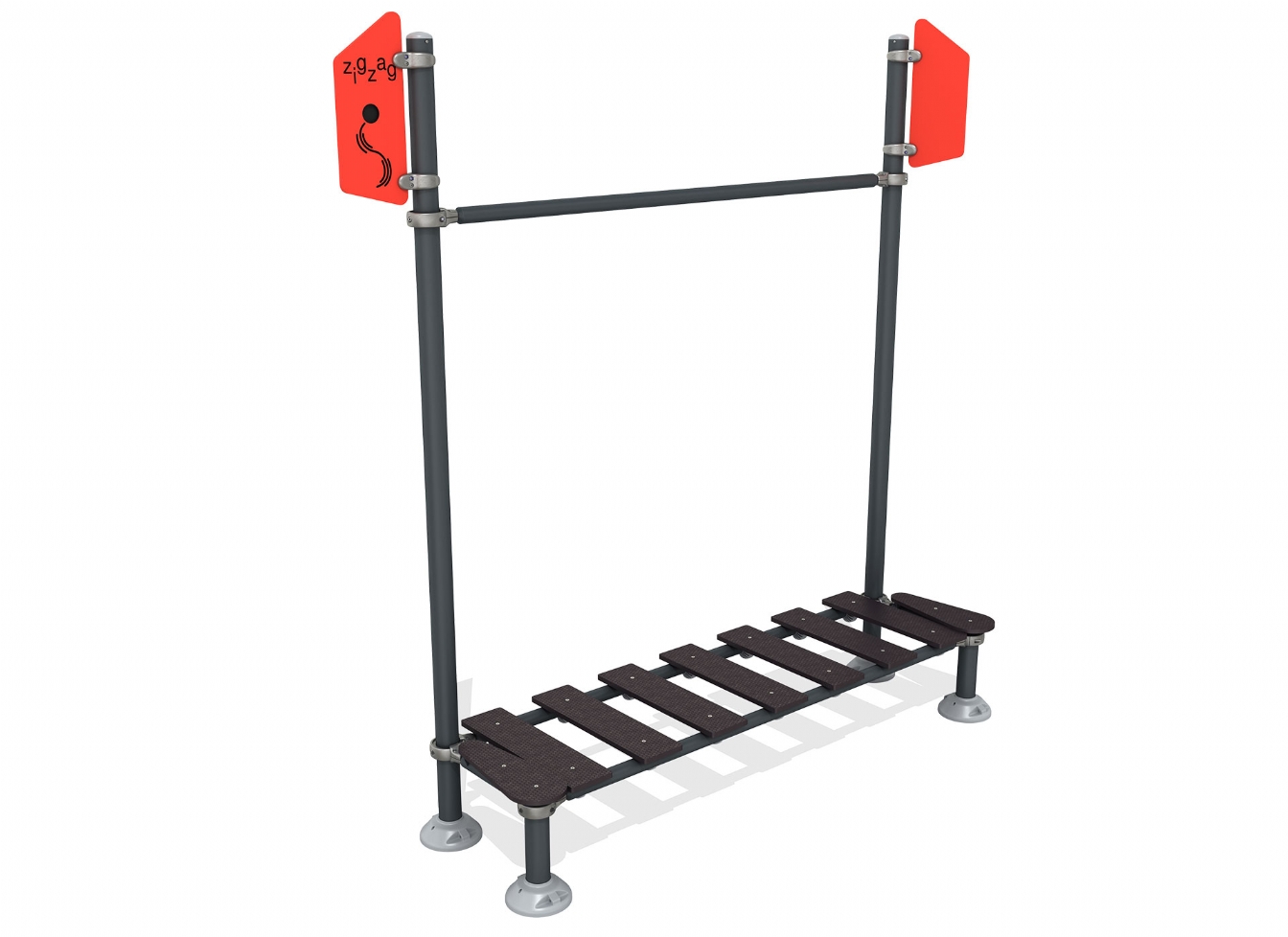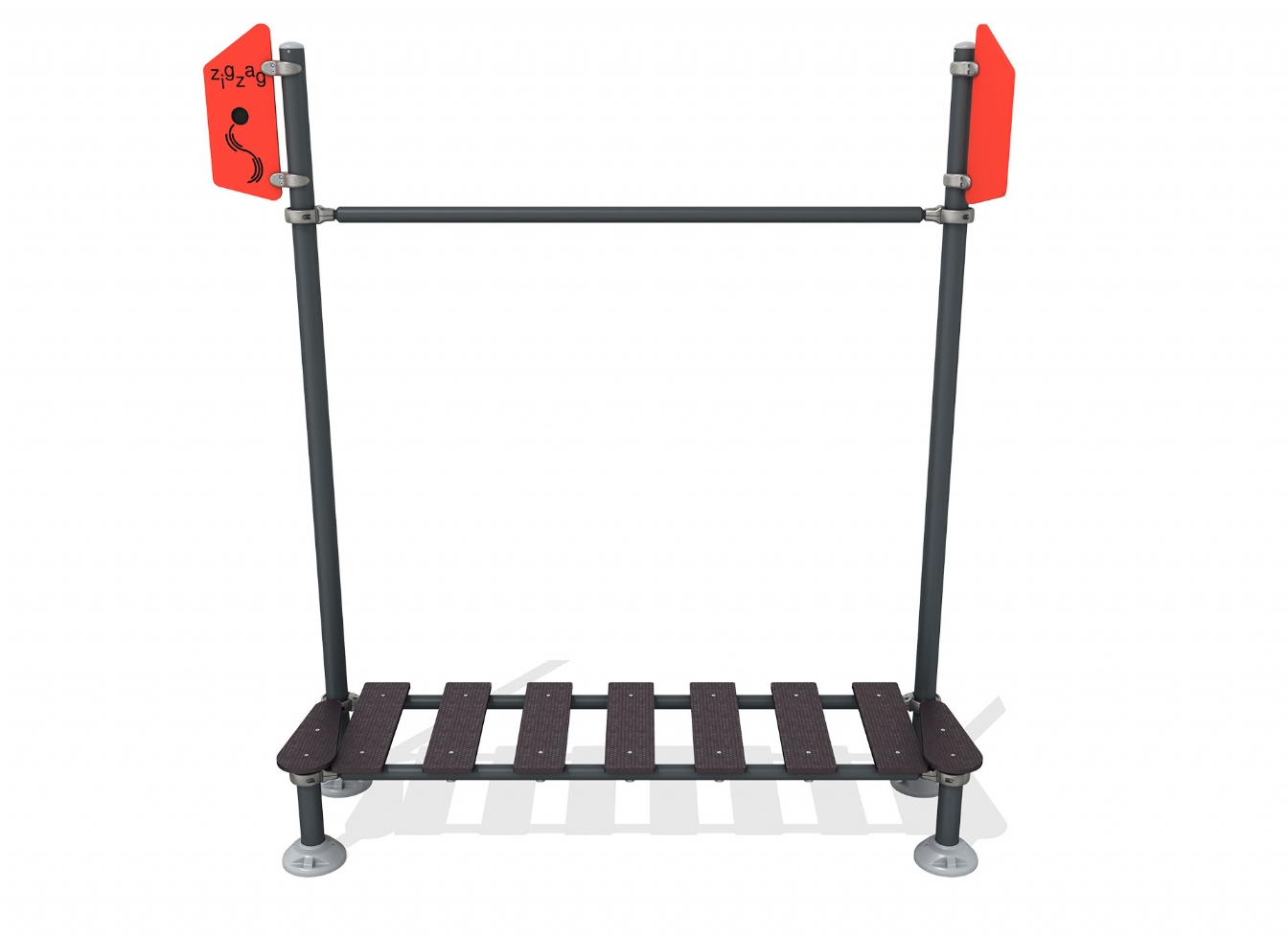 Lekställning Ilera i metallprofil, HDPE och HPL för offentlig miljö.