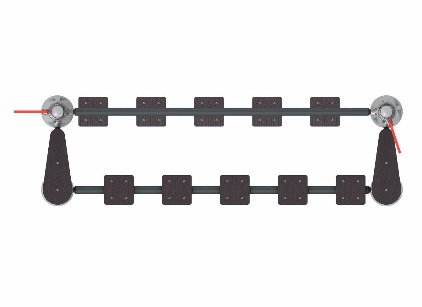 Lekställning Ilina i metallprofil, HDPE och HPL för offentlig miljö.