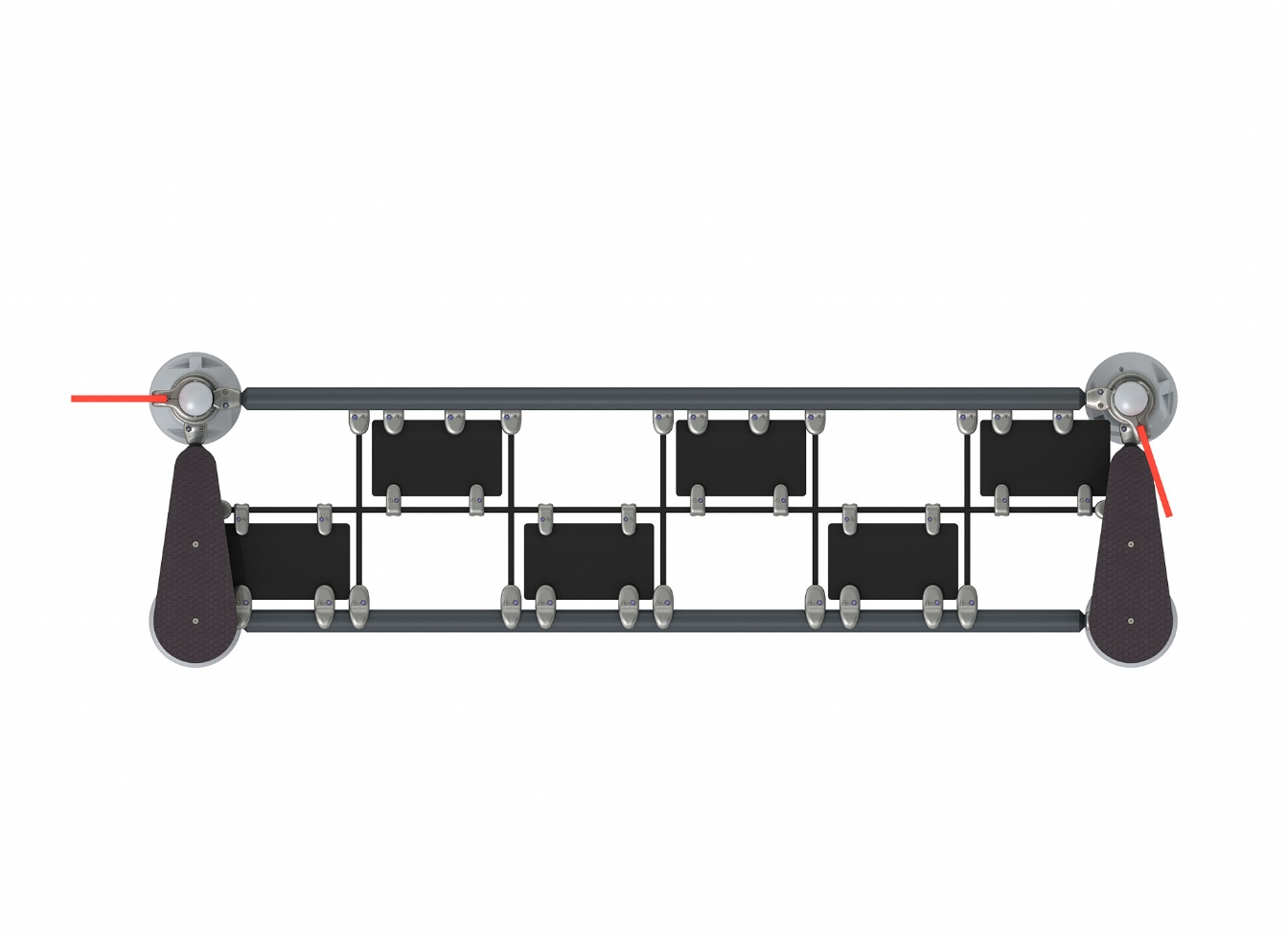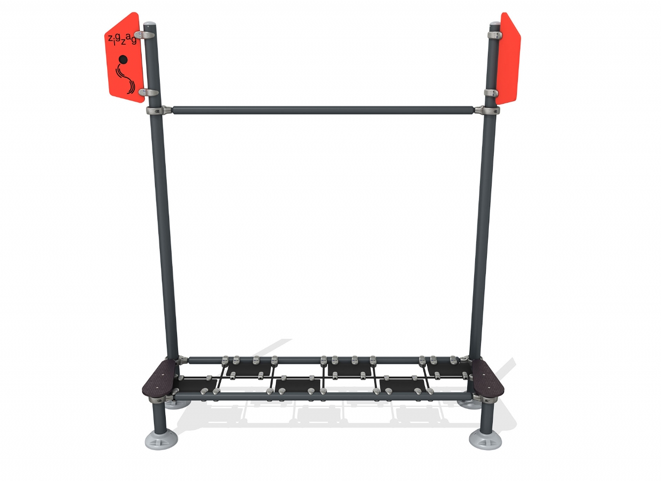 Lekställning Ilos i metallprofil, HDPE och HPL för offentlig miljö.