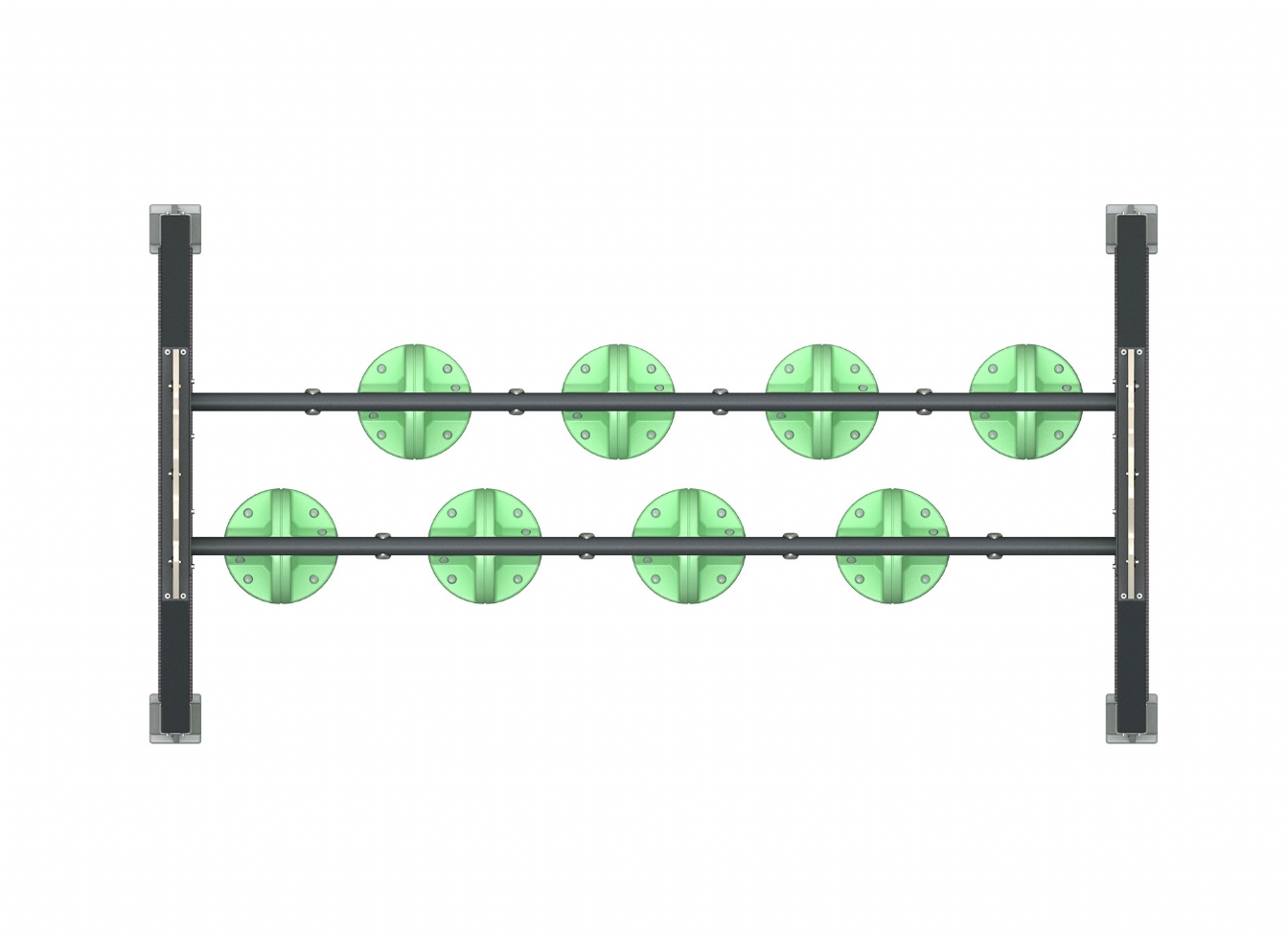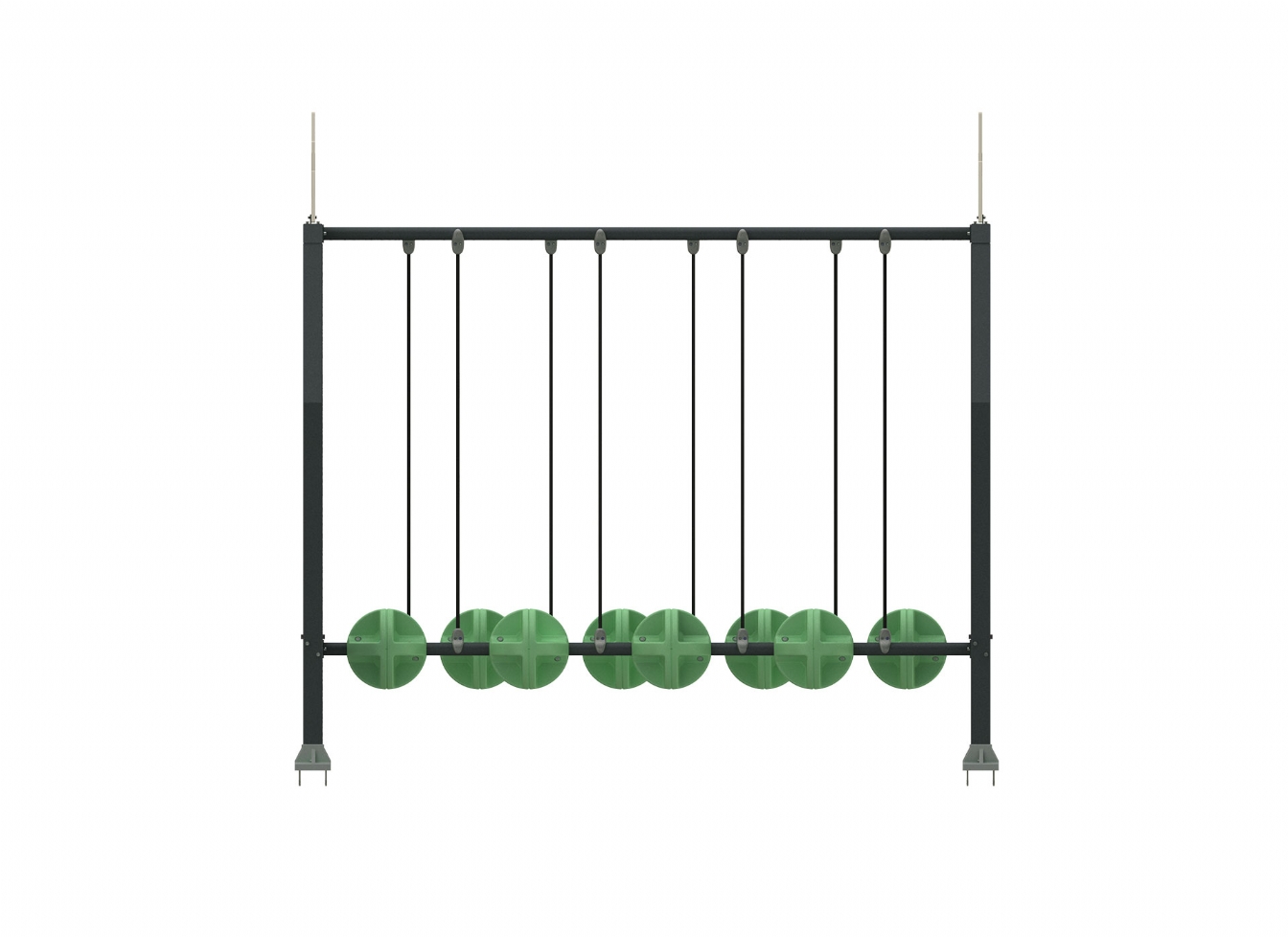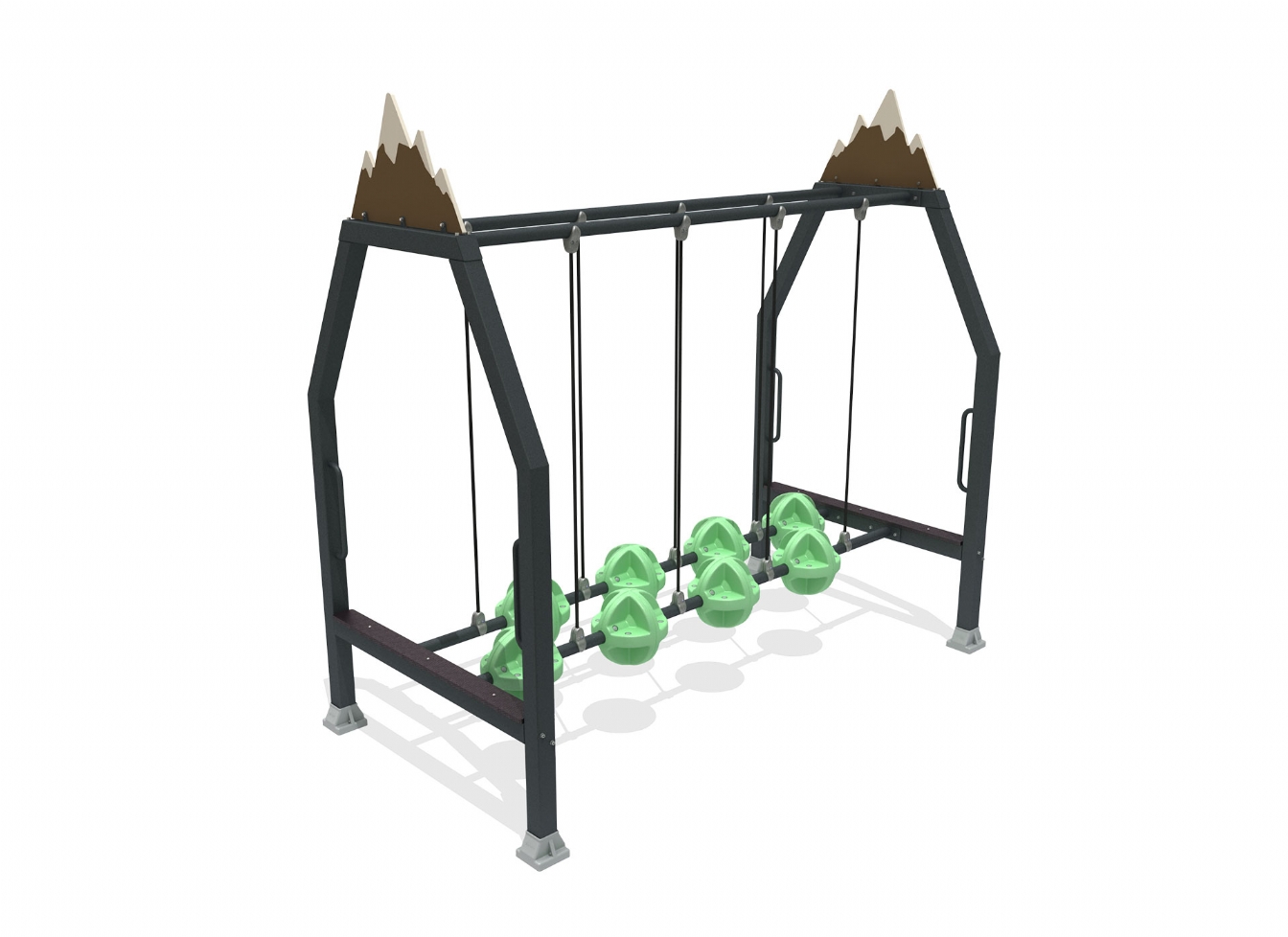 Lekställning Ilula i metallprofil, HDPE och HPL för offentlig miljö.