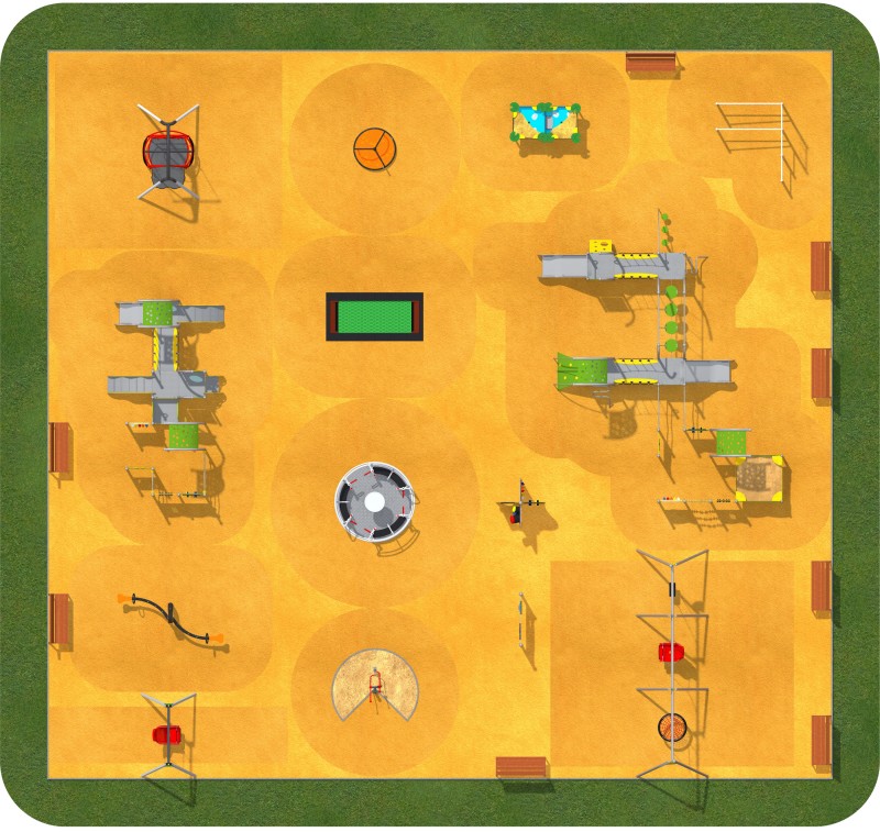 Lekställning IP-6914 är utvecklad för offentliga lek- och utemiljöer där säkerhet, hållbarhet och driftsäkerhet är avgörande. Produkten stimulerar rörelse, koordination och social interaktion samt ger ett tydligt lekvärde i offentliga miljöer. Materialvalet är anpassat för lång livslängd i nordiskt klimat. Konstruktionen är anpassad för daglig användning i parker, skolor, förskolor och bostadsområden med långsiktigt underhåll i fokus. Kontakta oss gärna för rådgivning om placering, underlag, montage och val av utförande.