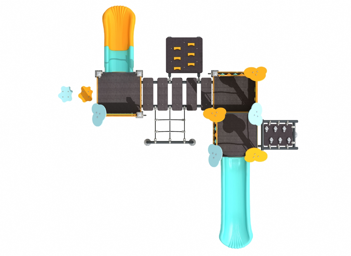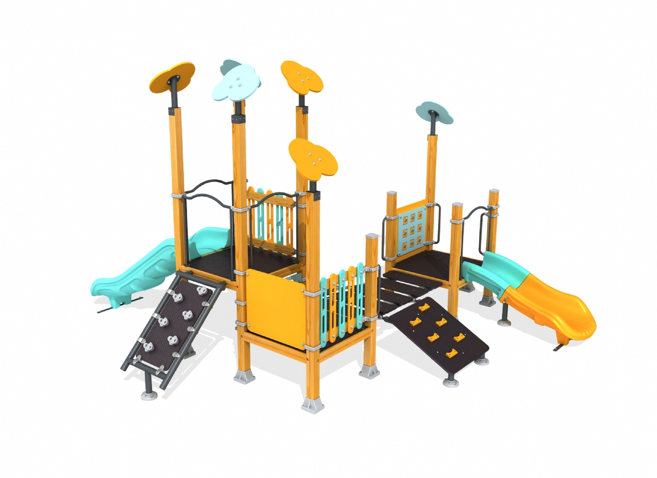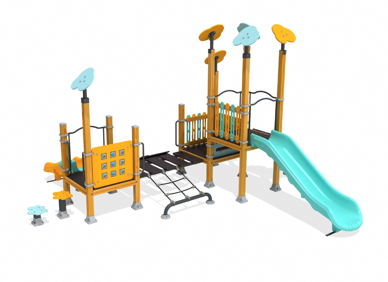 Lekställning Jarera i polyeten, plåt och impregnerad furu för offentlig miljö.