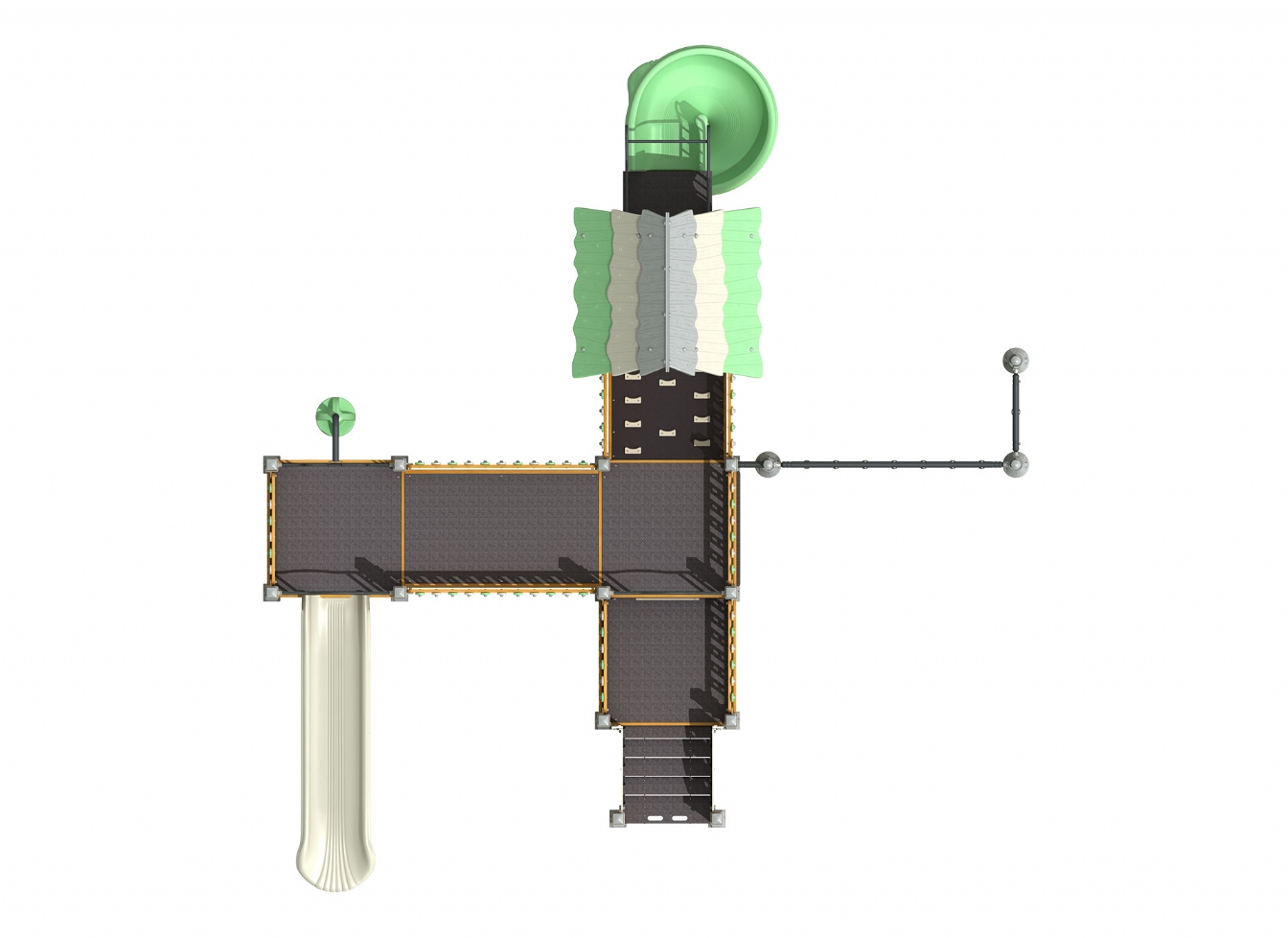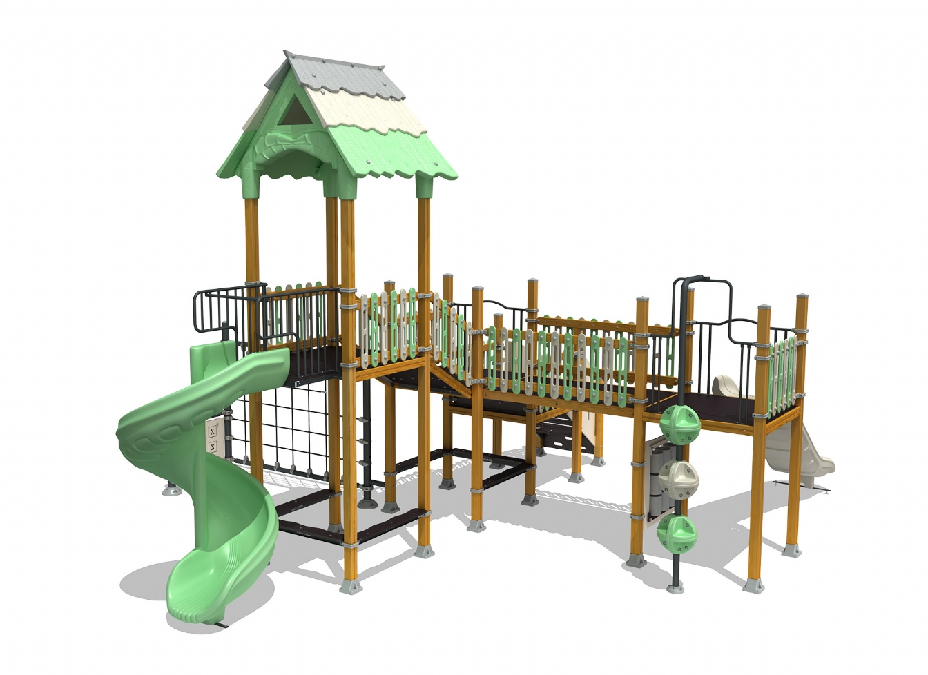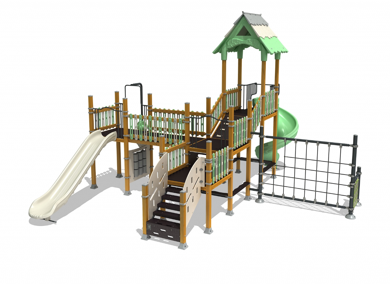 Lekställning Jarilo i polyeten, plåt och impregnerad furu för offentlig miljö.