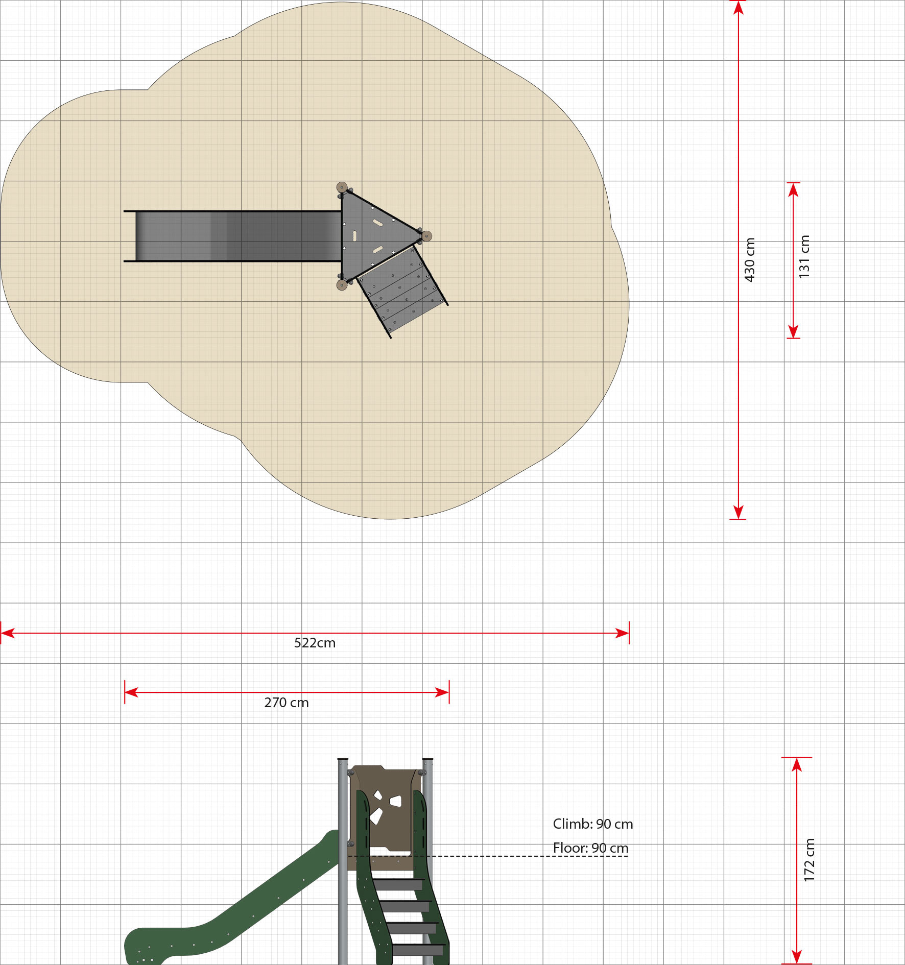 Lekställning Kaquin är utvecklad för lekplatser där barn behöver varierade utmaningar i samma produkt. Den kombinerar lekvärde med robust konstruktion och uppmuntrar till klättring, balans och social lek. Produkten passar väl i förskola, skola och parkmiljö där hög användning ställer krav på kvalitet och driftsäkerhet. Mått (L x B x H): 270 cm x 131 cm x 172 cm. Max fallhöjd: 90 cm. Rekommenderad ålder: Från 2 år.