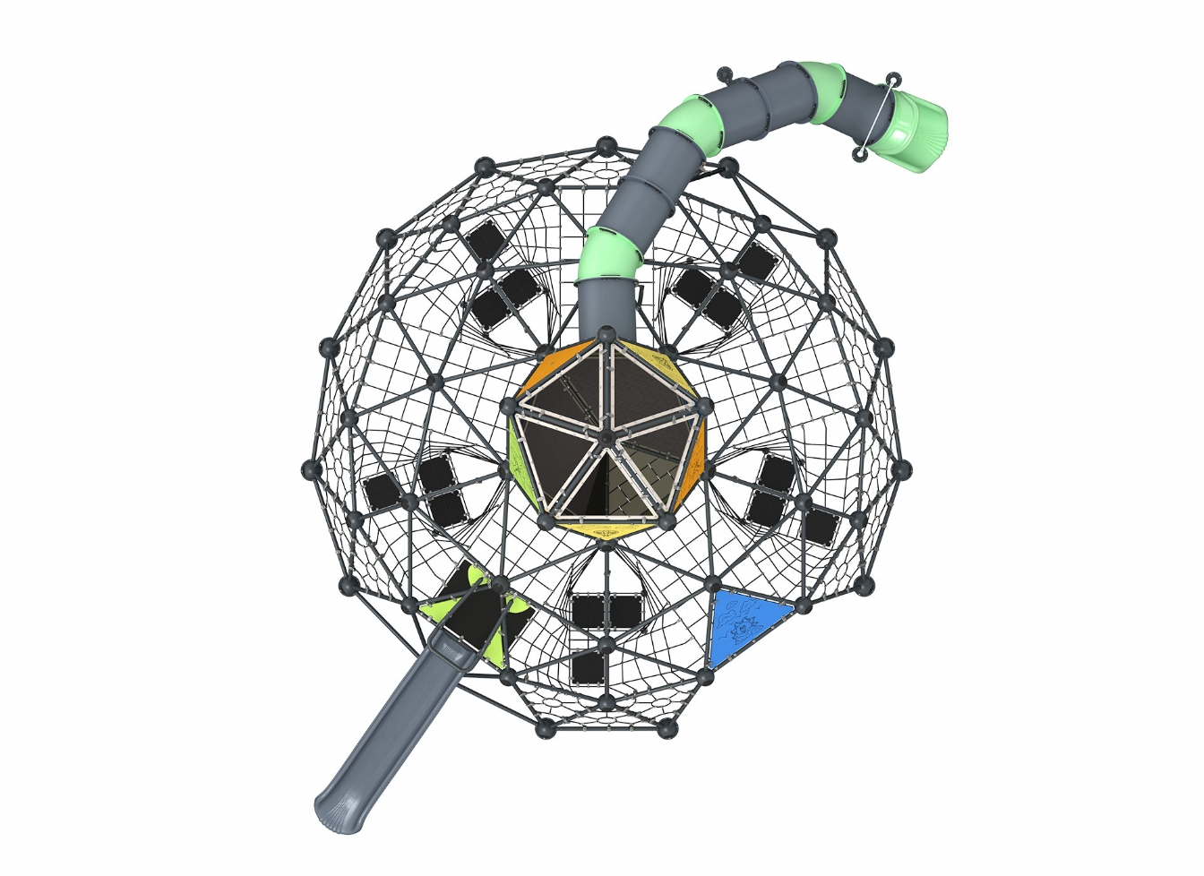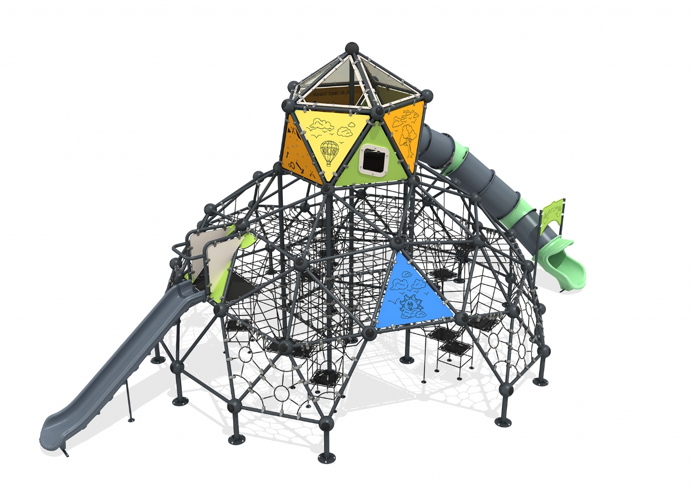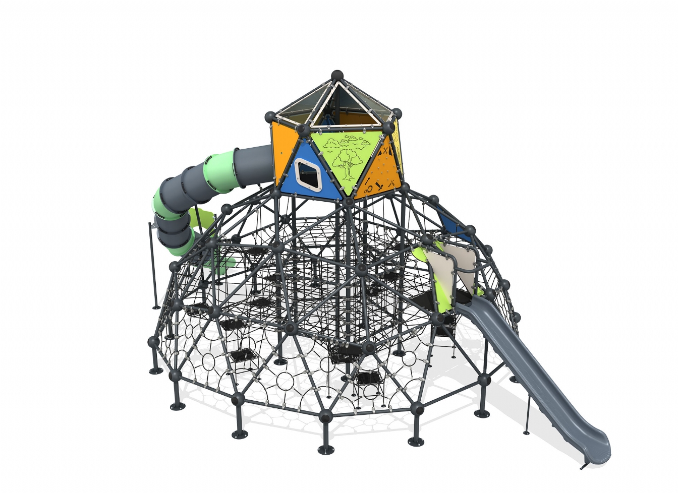 Lekställning Kelar är utvecklad för lekplatser, skolor, förskolor och andra offentliga utemiljöer. Produkten har bredd 1294 cm, djup 821 cm och höjd 616 cm. Specifikationen omfattar säkerhetszon L 1596 x W 1194 samt rutschhöjd 200. Utförandet i stålvajer och metallprofil ger en tålig konstruktion som lämpar sig för återkommande användning i krävande miljöer. Den är anpassad för upp till 68 barn och rekommenderad ålder 5-12.