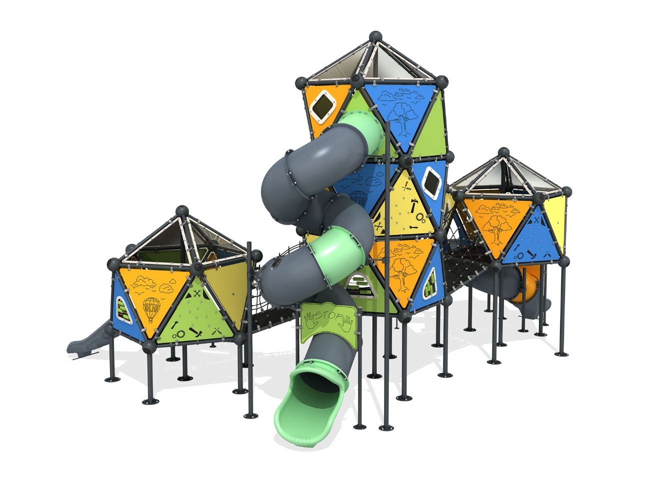 Lekställning Keli är utvecklad för lekplatser, skolor, förskolor och andra offentliga utemiljöer. Produkten har bredd 1061 cm, djup 874 cm och höjd 664 cm. Specifikationen omfattar säkerhetszon L 1458 x W 1173 samt rutschhöjd 100. Utförandet i stålvajer och metallprofil ger en tålig konstruktion som lämpar sig för återkommande användning i krävande miljöer. Den är anpassad för upp till 39 barn och rekommenderad ålder 5-12.