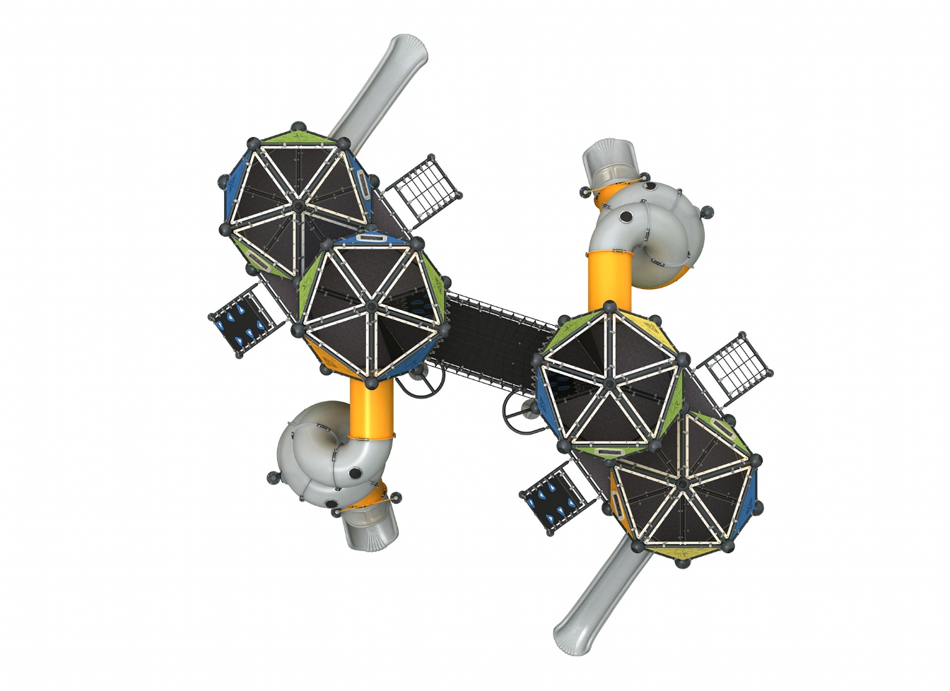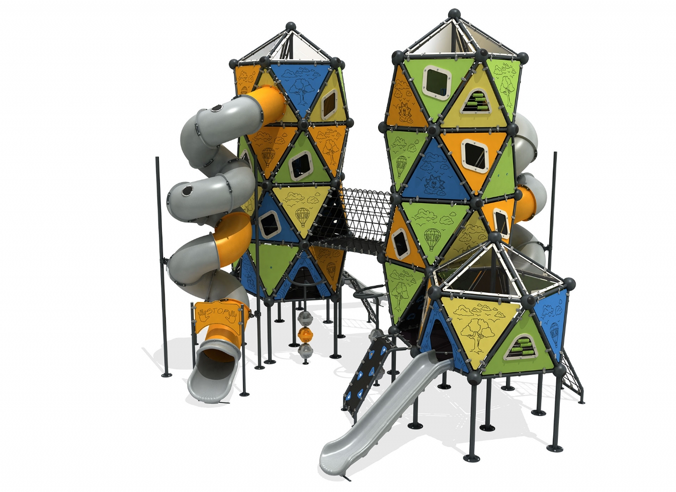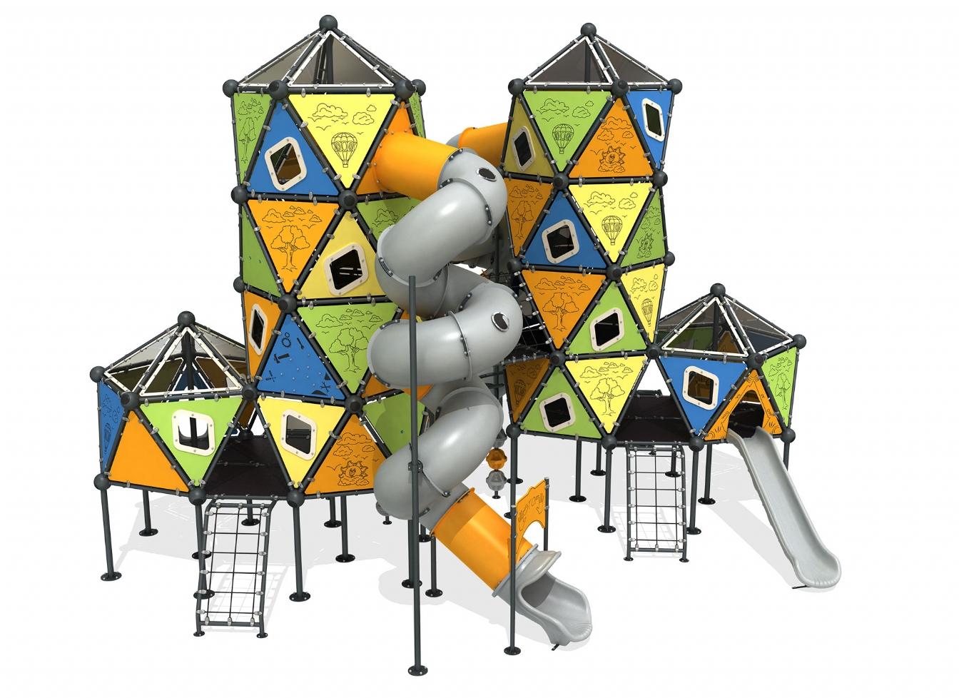 Lekställning Kelo är utvecklad för lekplatser, skolor, förskolor och andra offentliga utemiljöer. Produkten har bredd 1151 cm, djup 913 cm och höjd 803 cm. Specifikationen omfattar säkerhetszon L 1458 x W 1262 samt rutschhöjd 150 cm. Utförandet i stålvajer och metallprofil ger en tålig konstruktion som lämpar sig för återkommande användning i krävande miljöer. Den är anpassad för upp till 75 barn och rekommenderad ålder 5-12.