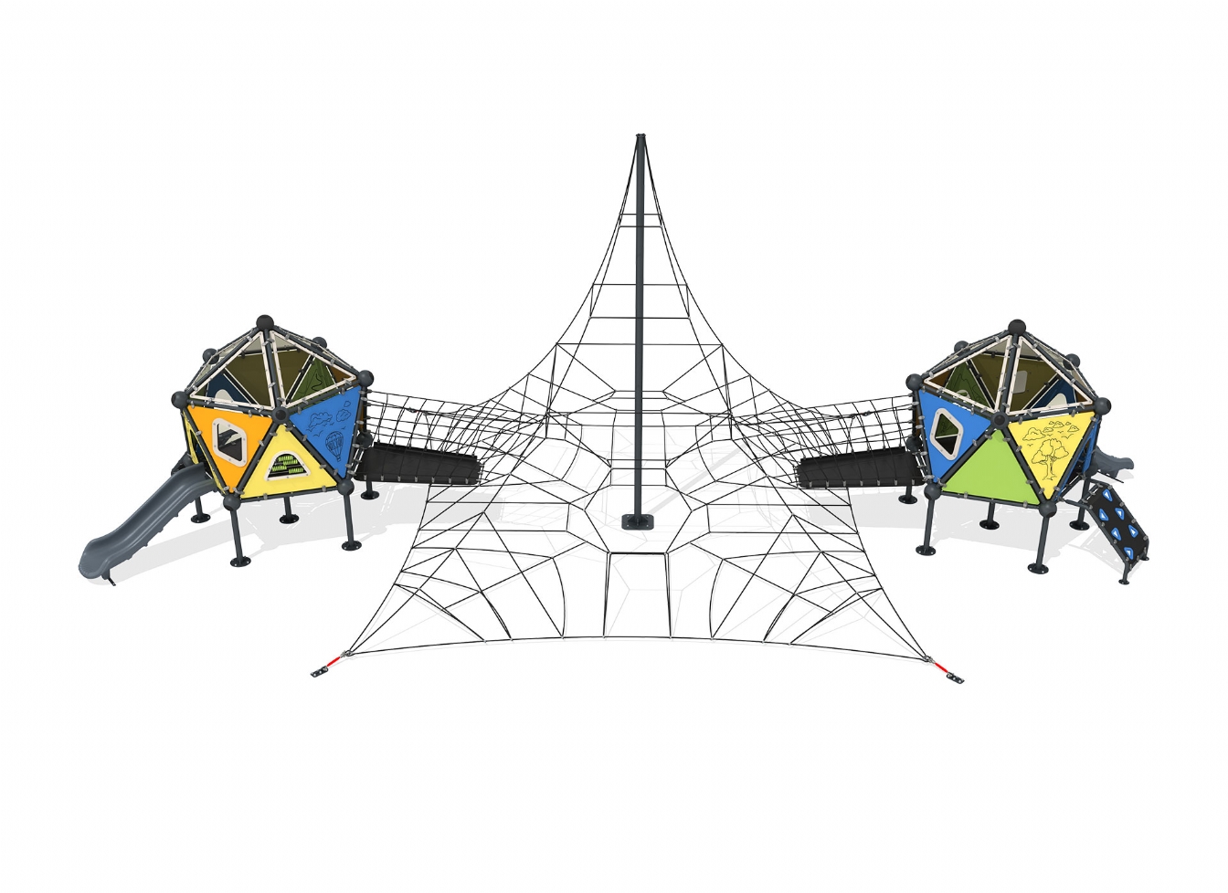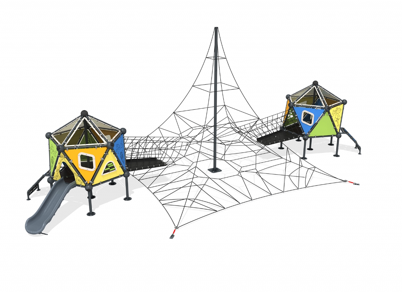 Lekställning Kelu är utvecklad för lekplatser, skolor, förskolor och andra offentliga utemiljöer. Produkten har bredd 1603 cm, djup 846 cm och höjd 600 cm. Specifikationen omfattar säkerhetszon L 1904 x W 1139 samt rutschhöjd 100 cm. Utförandet i stålvajer och metallprofil ger en tålig konstruktion som lämpar sig för återkommande användning i krävande miljöer. Den är anpassad för upp till 55 barn och rekommenderad ålder 5-12.
