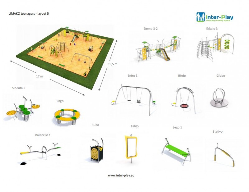 Lekställning Limako Junior 5 är utvecklad för offentliga lek- och utemiljöer där säkerhet, hållbarhet och driftsäkerhet är avgörande. Produkten stimulerar rörelse, koordination och social interaktion samt ger ett tydligt lekvärde i offentliga miljöer. Materialvalet är anpassat för lång livslängd i nordiskt klimat. Konstruktionen är anpassad för daglig användning i parker, skolor, förskolor och bostadsområden med långsiktigt underhåll i fokus. Kontakta oss gärna för rådgivning om placering, underlag, montage och val av utförande.