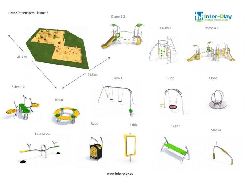 Lekställning Limako Junior 6 är utvecklad för offentliga lek- och utemiljöer där säkerhet, hållbarhet och driftsäkerhet är avgörande. Produkten stimulerar rörelse, koordination och social interaktion samt ger ett tydligt lekvärde i offentliga miljöer. Materialvalet är anpassat för lång livslängd i nordiskt klimat. Konstruktionen är anpassad för daglig användning i parker, skolor, förskolor och bostadsområden med långsiktigt underhåll i fokus. Kontakta oss gärna för rådgivning om placering, underlag, montage och val av utförande.