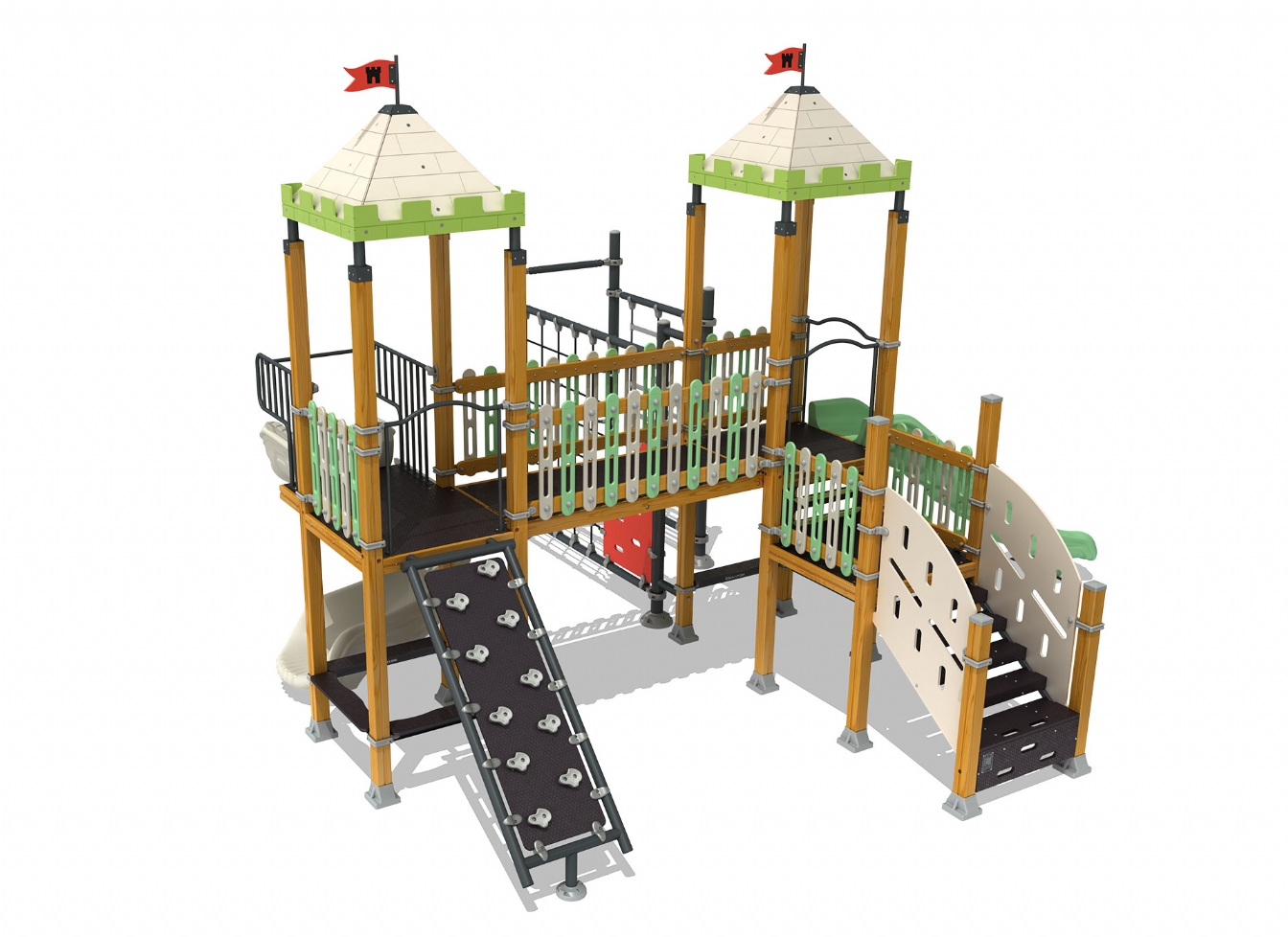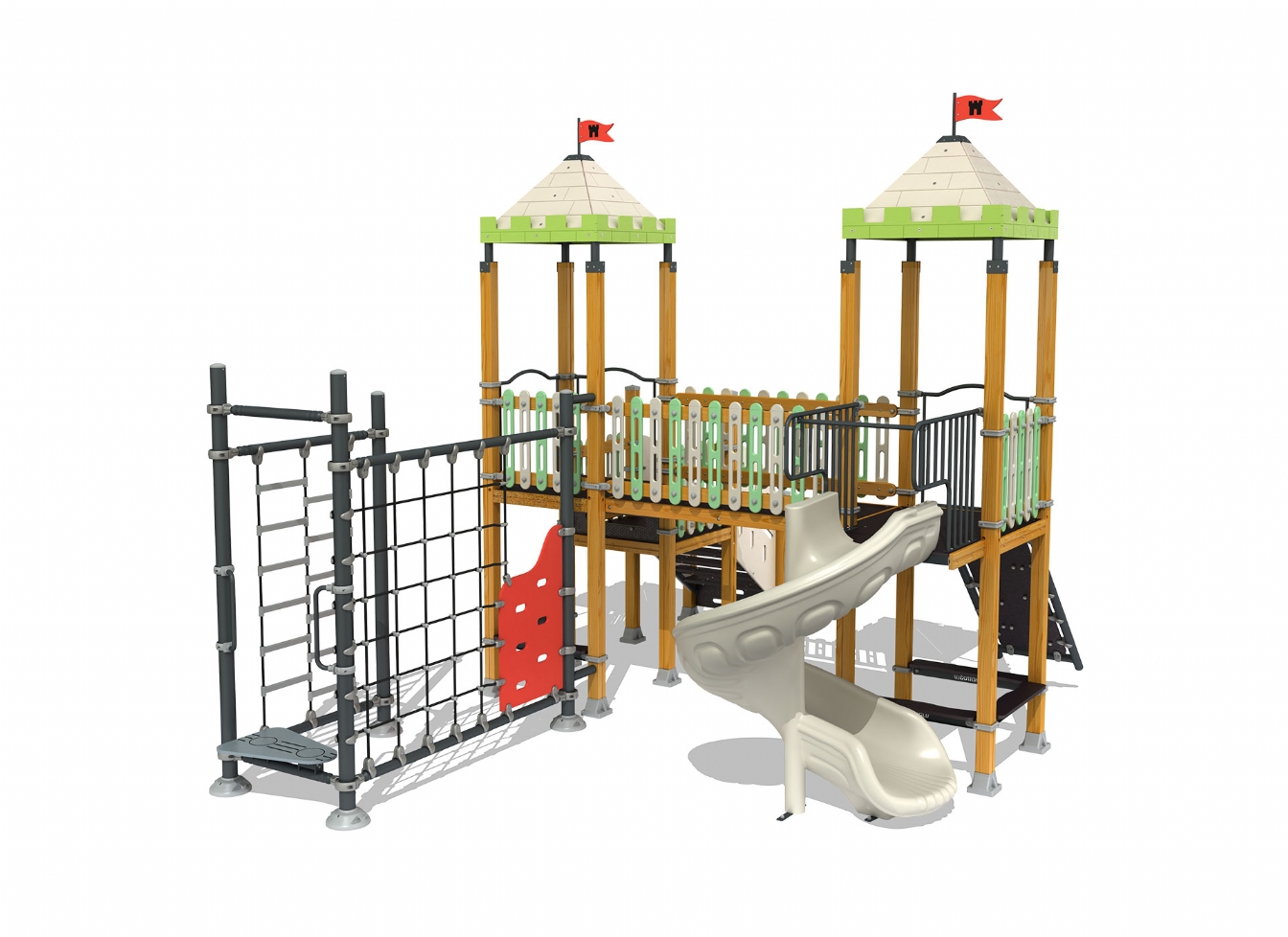 Lekställning Loris är utvecklad för lekplatser, skolor, förskolor och andra offentliga utemiljöer. Produkten har bredd 632 cm, djup 538 cm och höjd 412 cm. Specifikationen omfattar säkerhetszon L 967 x W 835 samt rutschhöjd 100. Utförandet i metallprofil, polykarbonat och marinplywood ger en tålig konstruktion som lämpar sig för återkommande användning i krävande miljöer. Den är anpassad för upp till 22 barn och rekommenderad ålder 3-12.