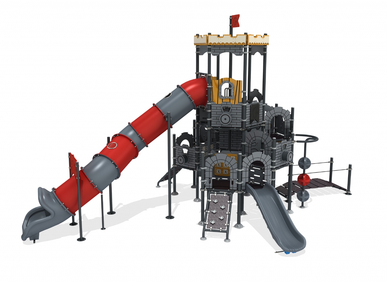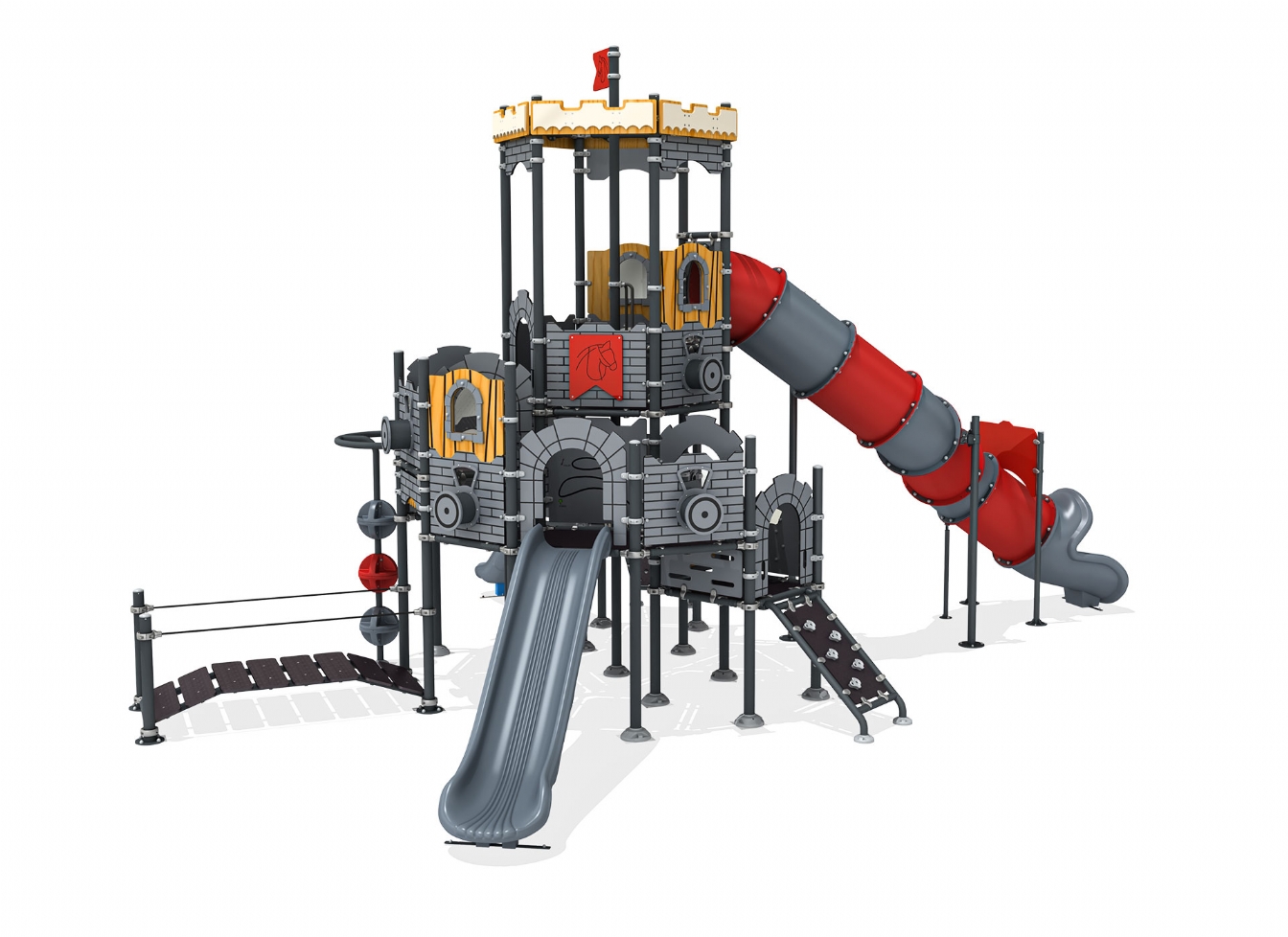 Lekställning Loru är utvecklad för lekplatser, skolor, förskolor och andra offentliga utemiljöer. Produkten har bredd 963 cm, djup 626 cm och höjd 563 cm. Specifikationen omfattar säkerhetszon L 1350 x W 930 samt rutschhöjd 100. Utförandet i metallprofil, polykarbonat och marinplywood ger en tålig konstruktion som lämpar sig för återkommande användning i krävande miljöer. Den är anpassad för upp till 40 barn och rekommenderad ålder 3-12.