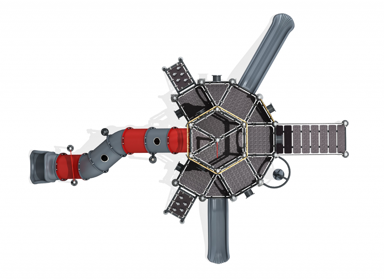 Lekställning Loru i metallprofil, polykarbonat och marinplywood för offentlig miljö.