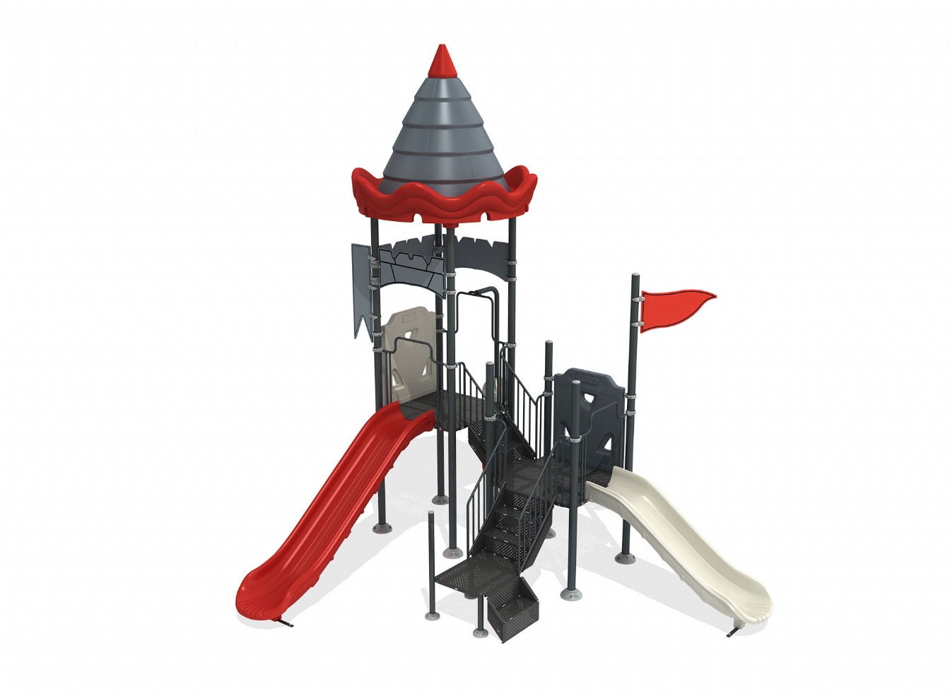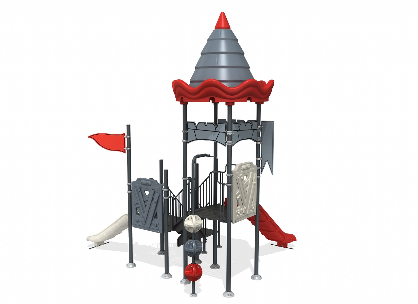 Lekställning Lorun är utvecklad för lekplatser, skolor, förskolor och andra offentliga utemiljöer. Produkten har bredd 524 cm, djup 427 cm och höjd 577 cm. Specifikationen omfattar säkerhetszon L 1089 x W 1035 samt rutschhöjd 150 cm. Utförandet i metallprofil, polykarbonat och marinplywood ger en tålig konstruktion som lämpar sig för återkommande användning i krävande miljöer. Den är anpassad för upp till 10 barn och rekommenderad ålder 3-12.