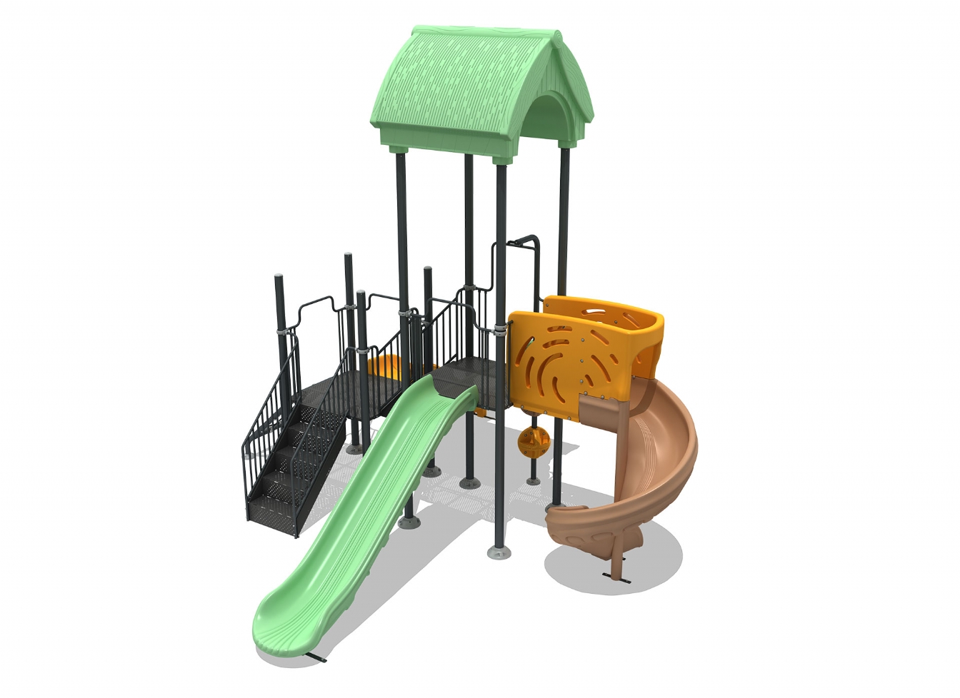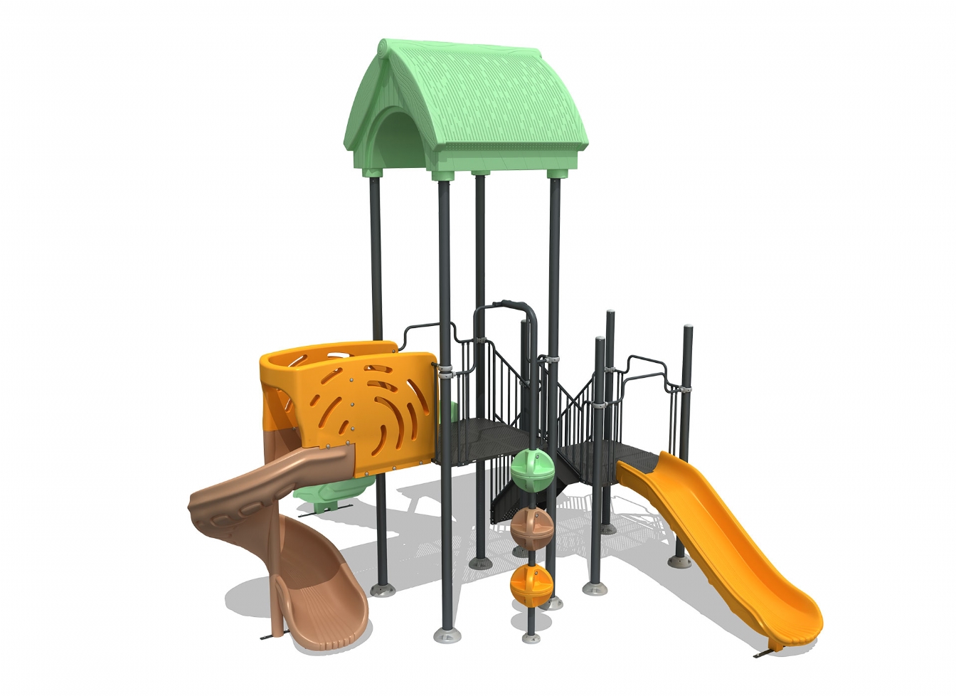Lekställning Mara är utvecklad för lekplatser, skolor, förskolor och andra offentliga utemiljöer. Produkten har bredd 589 cm, djup 559 cm och höjd 502 cm. Specifikationen omfattar säkerhetszon L 907 x W 889 samt rutschhöjd 100. Utförandet i polykarbonat, marinplywood och gummi ger en tålig konstruktion som lämpar sig för återkommande användning i krävande miljöer. Den är anpassad för upp till 20 barn och rekommenderad ålder 3-12.