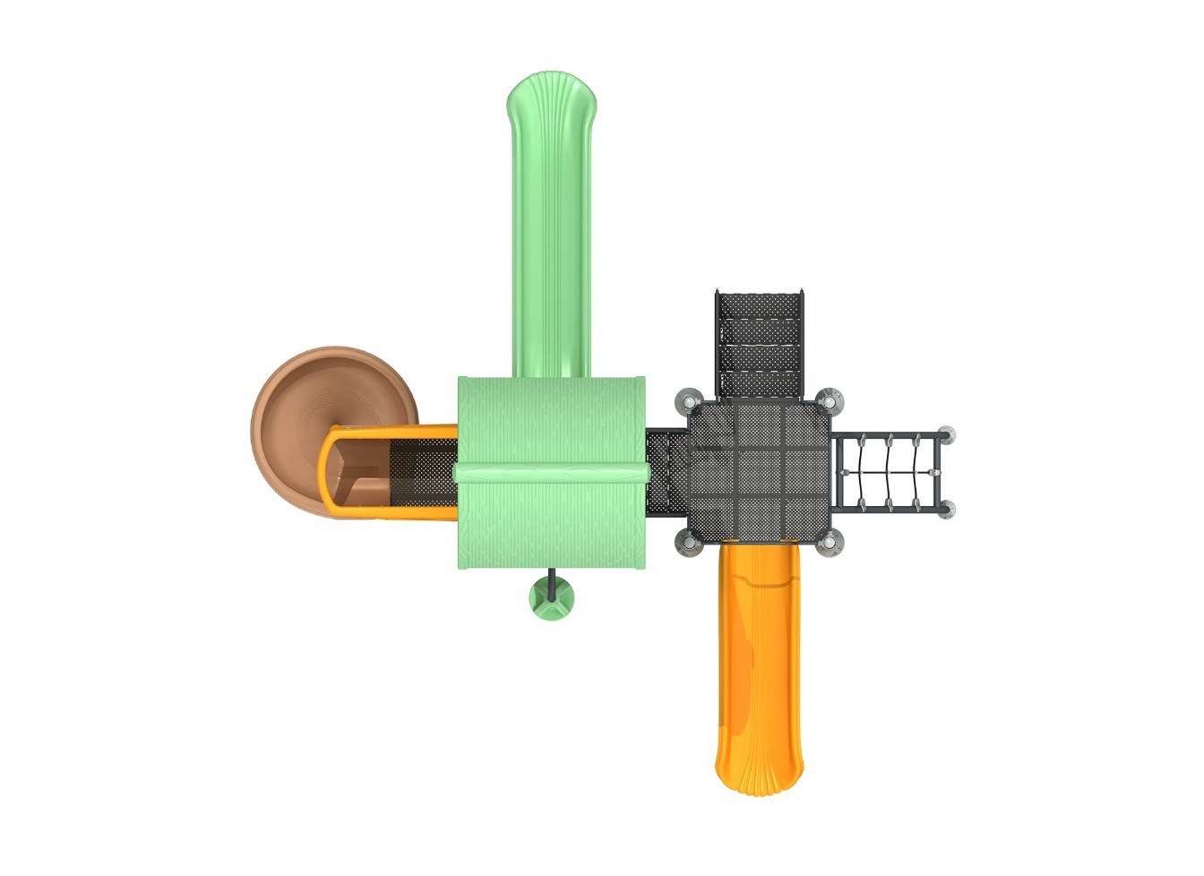 Lekställning Mara i polykarbonat, marinplywood och gummi för offentlig miljö.