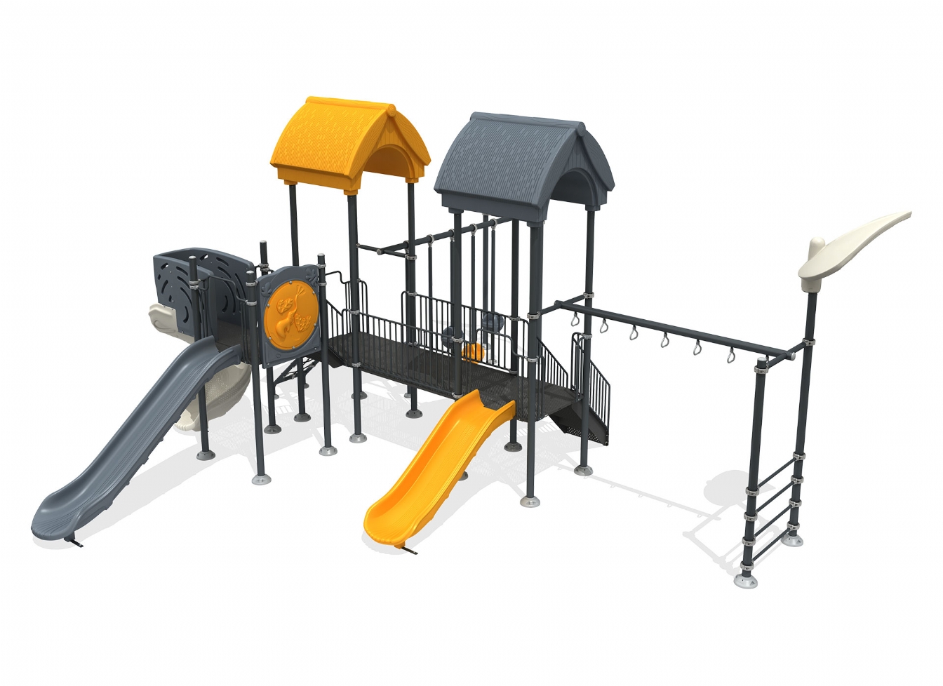 Lekställning Maria är utvecklad för lekplatser, skolor, förskolor och andra offentliga utemiljöer. Produkten har bredd 950 cm, djup 887 cm och höjd 453 cm. Specifikationen omfattar säkerhetszon L 1257 x W 1188 samt rutschhöjd 100. Utförandet i polykarbonat, marinplywood och gummi ger en tålig konstruktion som lämpar sig för återkommande användning i krävande miljöer. Den är anpassad för upp till 22 barn och rekommenderad ålder 3-12.