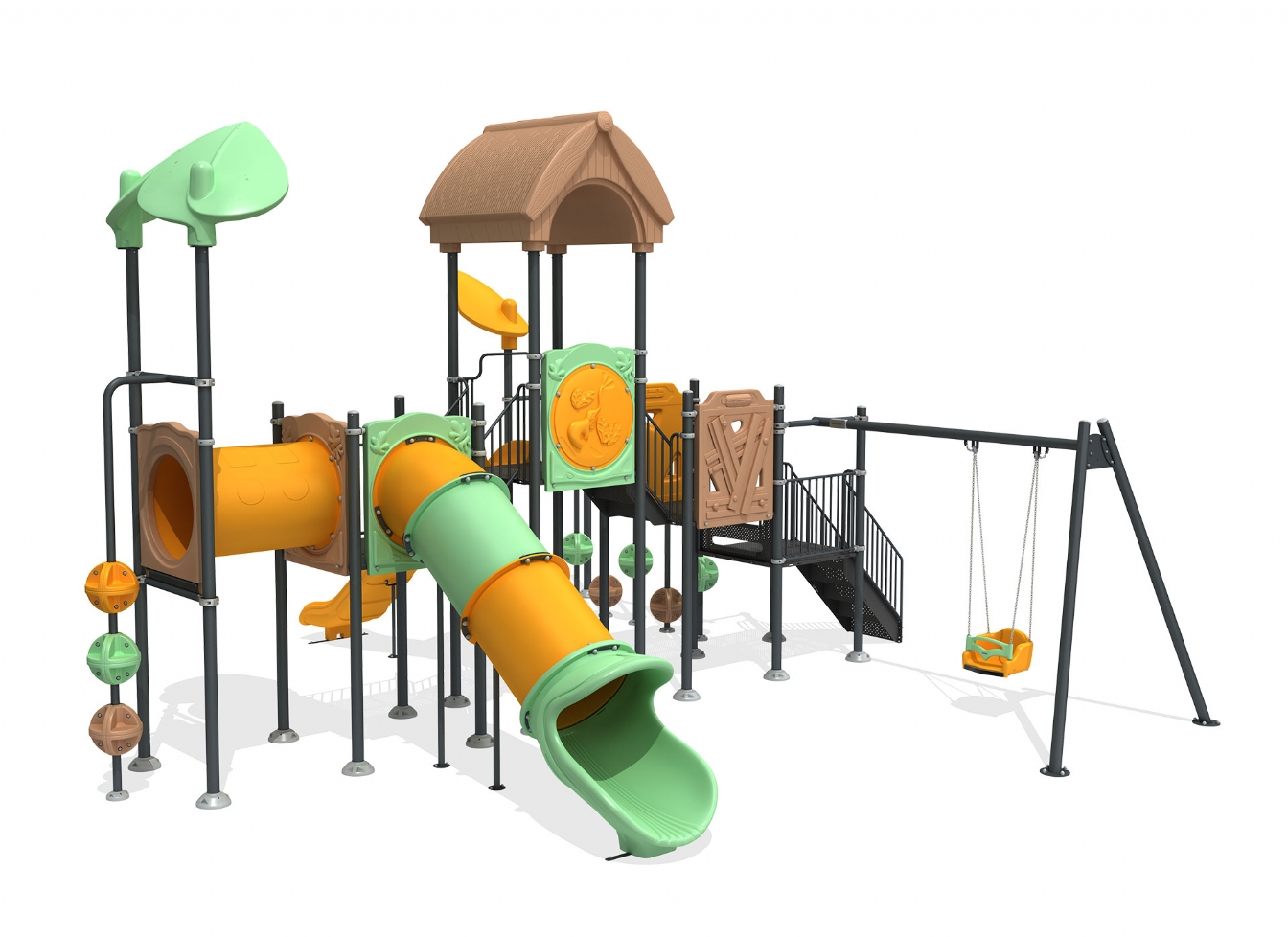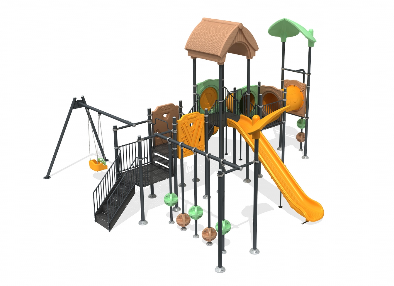 Lekställning Marin är utvecklad för lekplatser, skolor, förskolor och andra offentliga utemiljöer. Produkten har bredd 839 cm, djup 835 cm och höjd 502 cm. Specifikationen omfattar säkerhetszon L 1165 x W 1146 samt rutschhöjd 150 cm. Utförandet i polykarbonat, marinplywood och gummi ger en tålig konstruktion som lämpar sig för återkommande användning i krävande miljöer. Den är anpassad för upp till 30 barn och rekommenderad ålder 3-12.