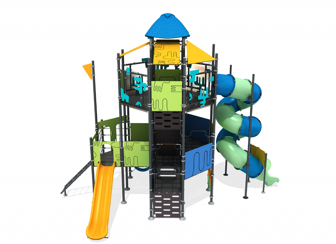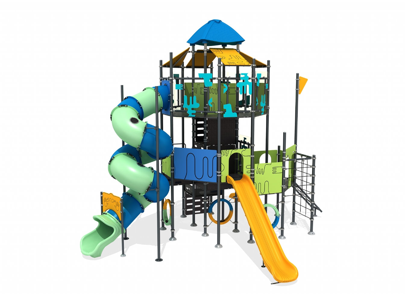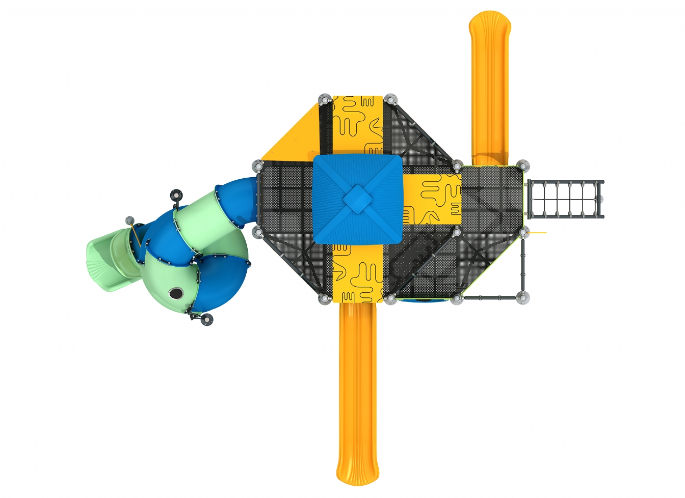 Lekställning Marina i metallprofil, polykarbonat och marinplywood för offentlig miljö.