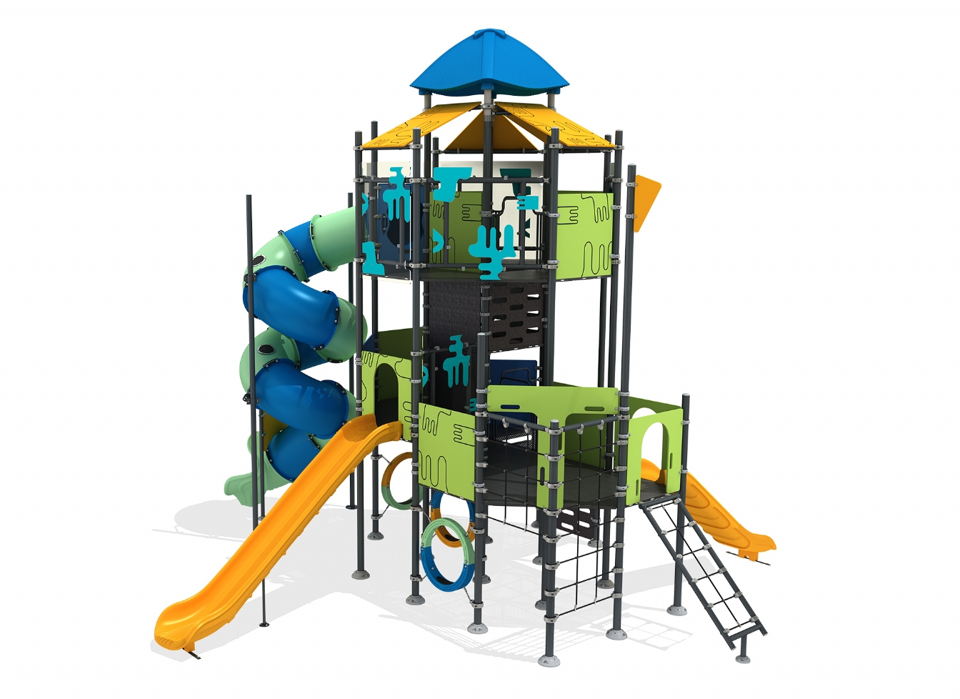 Lekställning Marina är utvecklad för lekplatser, skolor, förskolor och andra offentliga utemiljöer. Produkten har bredd 899 cm, djup 841 cm och höjd 710 cm. Specifikationen omfattar säkerhetszon L 1240 x W 1238 samt rutschhöjd 150 cm. Utförandet i metallprofil, polykarbonat, marinplywood och gummi ger en tålig konstruktion som lämpar sig för återkommande användning i krävande miljöer. Den är anpassad för upp till 65 barn och rekommenderad ålder 6-12.