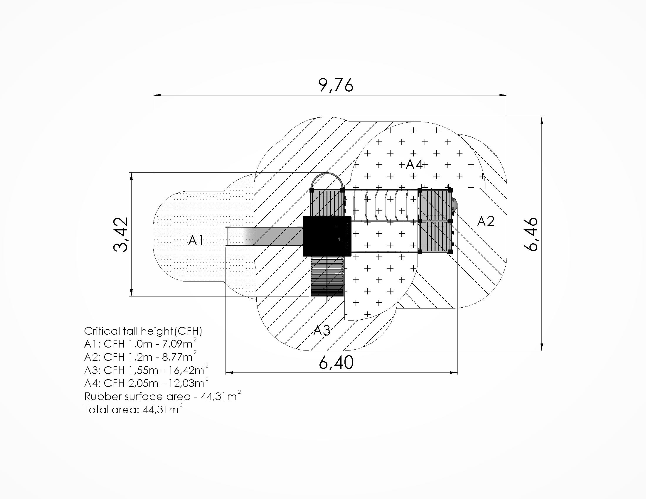 Lekställning Melian är en lekställning som tagits fram för lekplatser, förskolegårdar och andra offentliga utemiljöer. Modellen kombinerar flera lekmoment och ger barn möjlighet till varierad aktivitet, samspel och motorisk utveckling. Konstruktionen är avsedd för regelbunden användning över tid och passar projekt där man vill kombinera lekvärde med hållbar drift. Mått enligt specifikation: cirka 6,4 x 3,42 x 3,73 m. Rekommenderad ålder: 4+. En praktisk lösning för långsiktig och trygg lekmiljö.