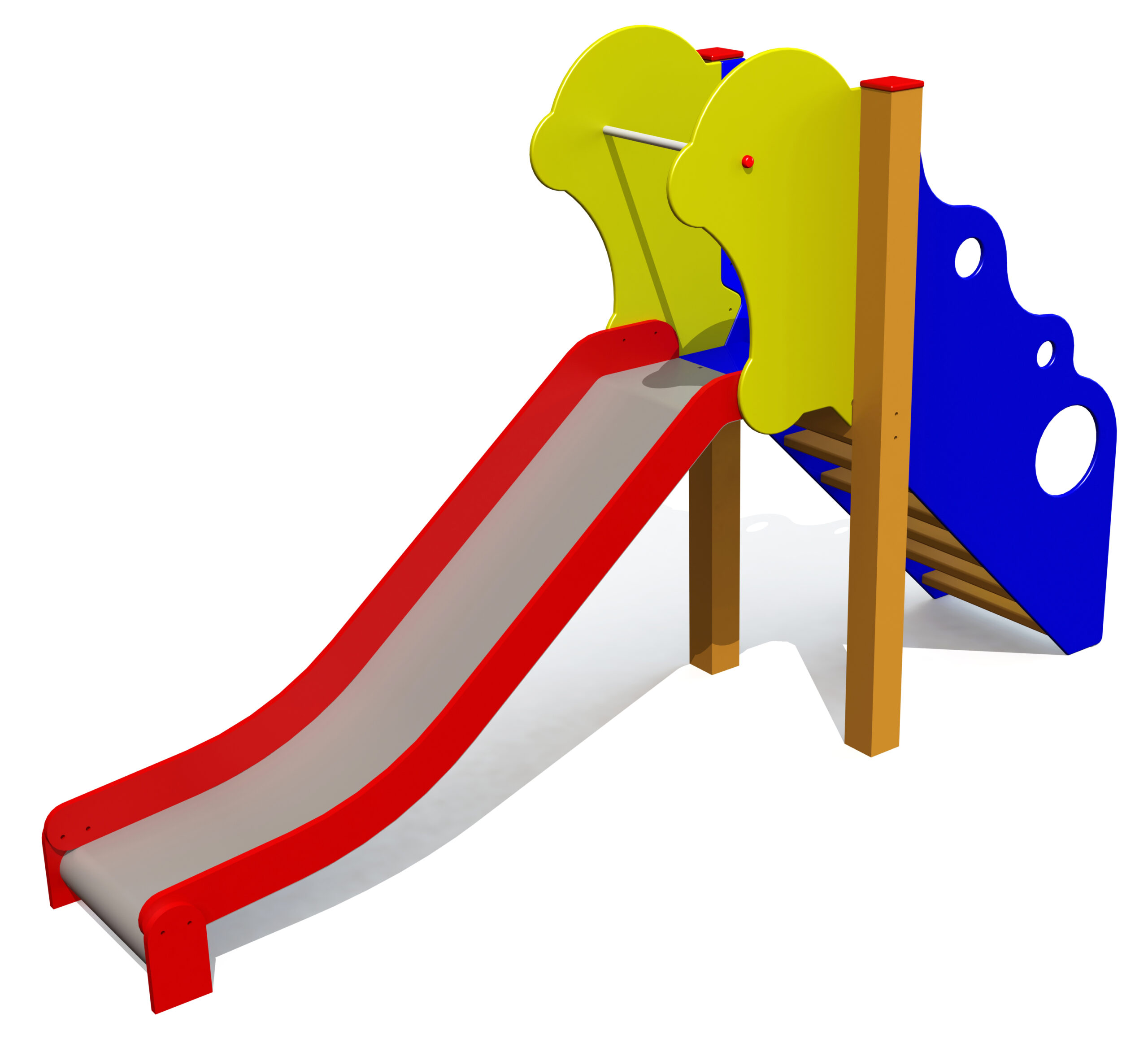 En fristående rutschkana anpassad för småbarn, utformad för säker och lättillgänglig glidlek som tränar balans och kroppskontroll.