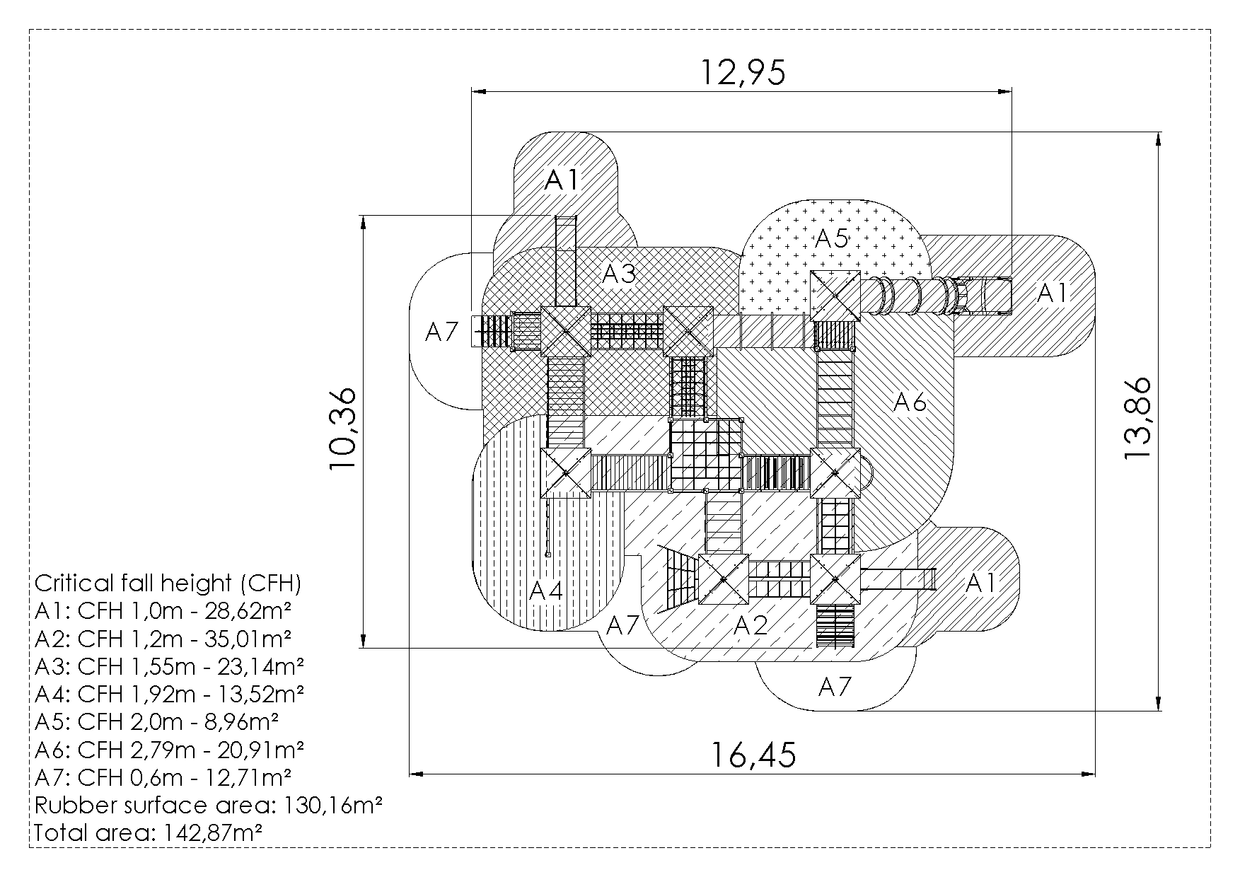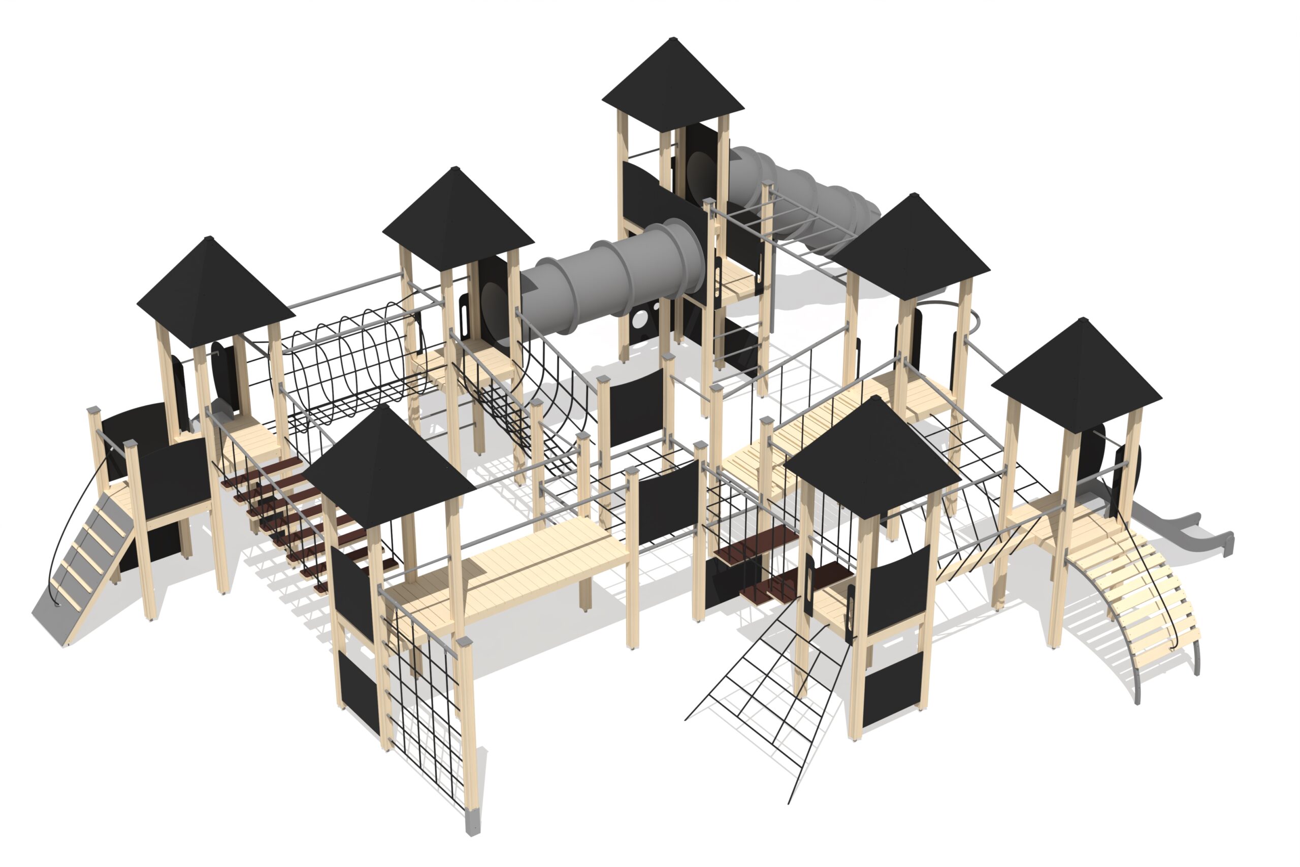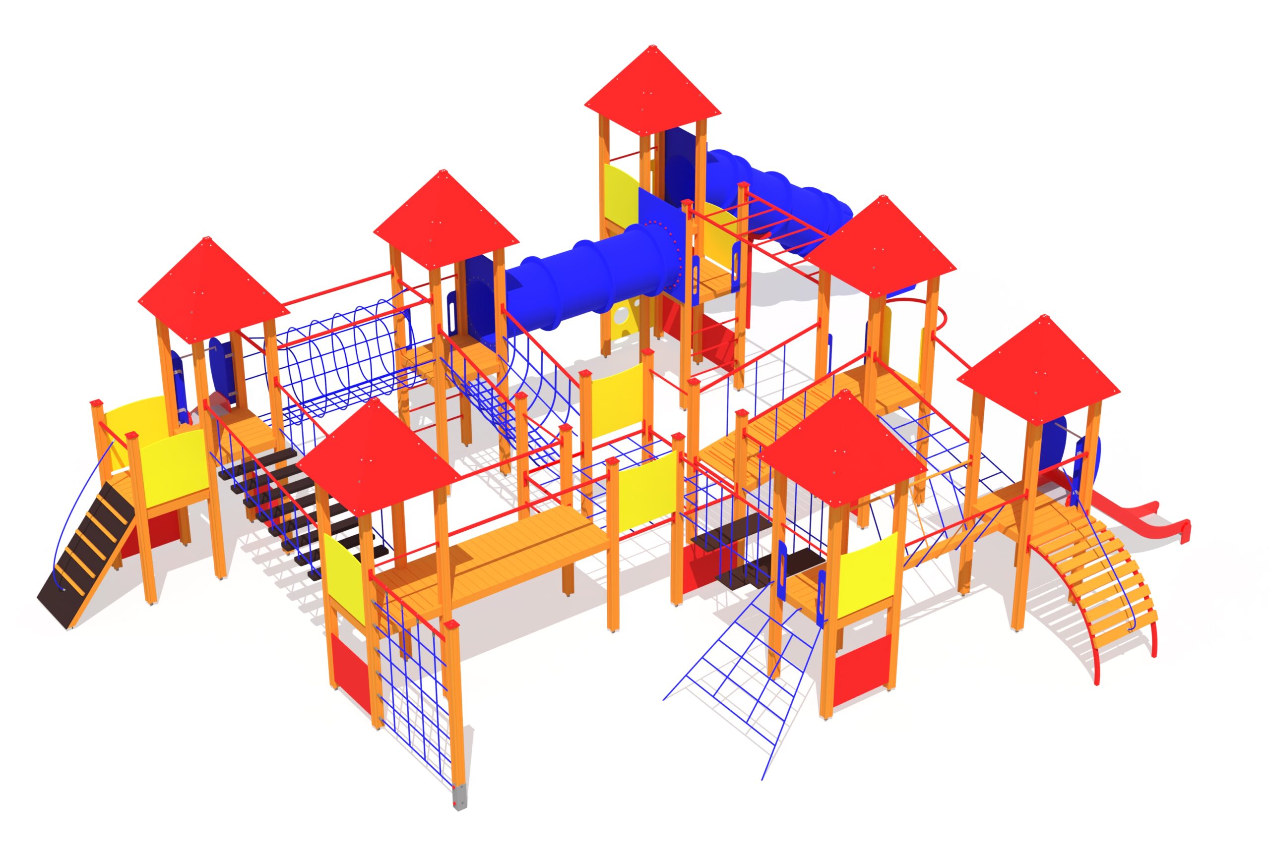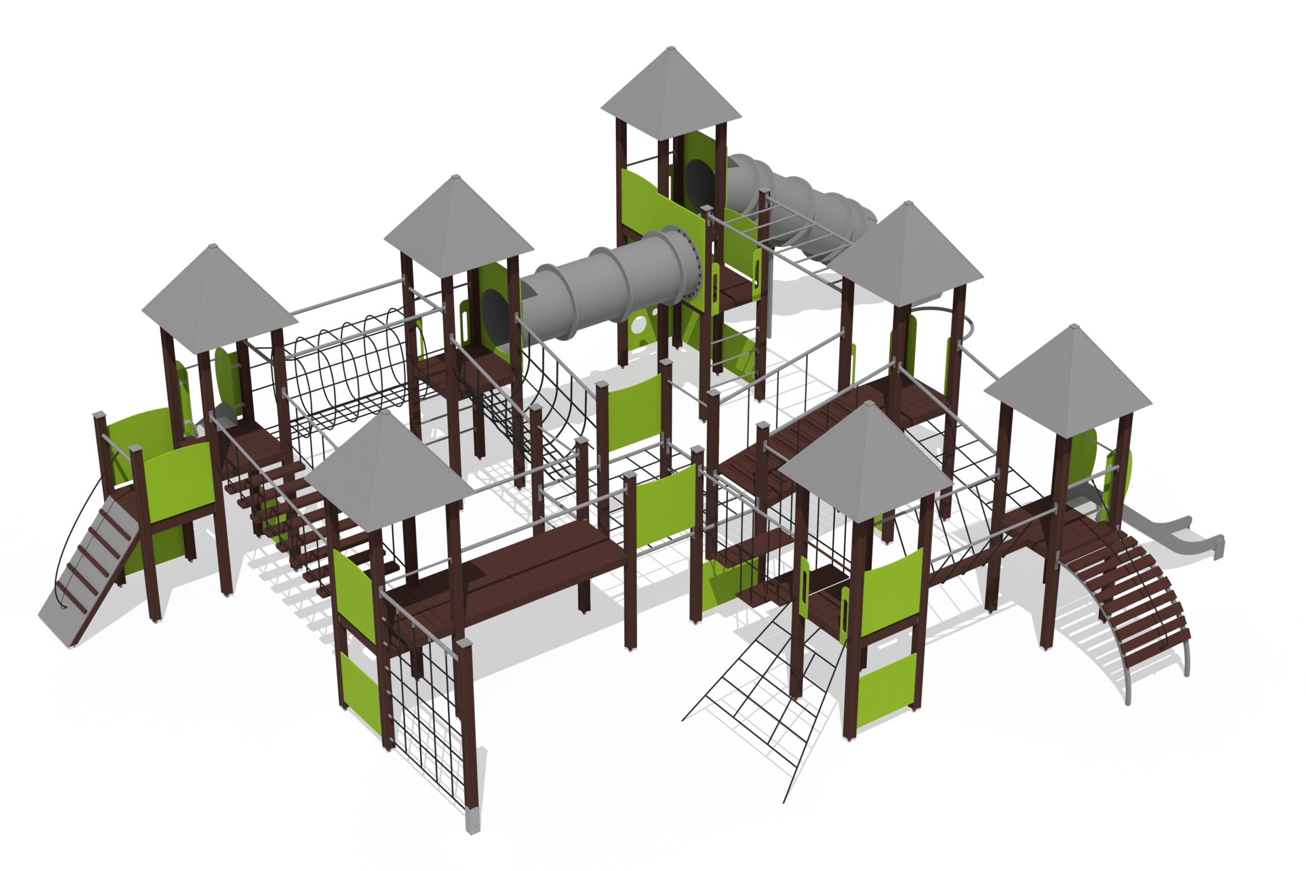 Produkten är utvecklad för lekplatser, förskolegårdar och andra offentliga utemiljöer där utrustningen behöver tåla regelbunden användning över tid. Modellen kombinerar flera lekmoment och ger barn möjlighet till varierad aktivitet, samspel och motorisk utveckling. Mått enligt specifikation: cirka 12,95 x 10,36 x 4,32 m. Rekommenderad ålder: 3+. En hållbar lösning för långsiktig drift och trygg användning i offentlig utemiljö.