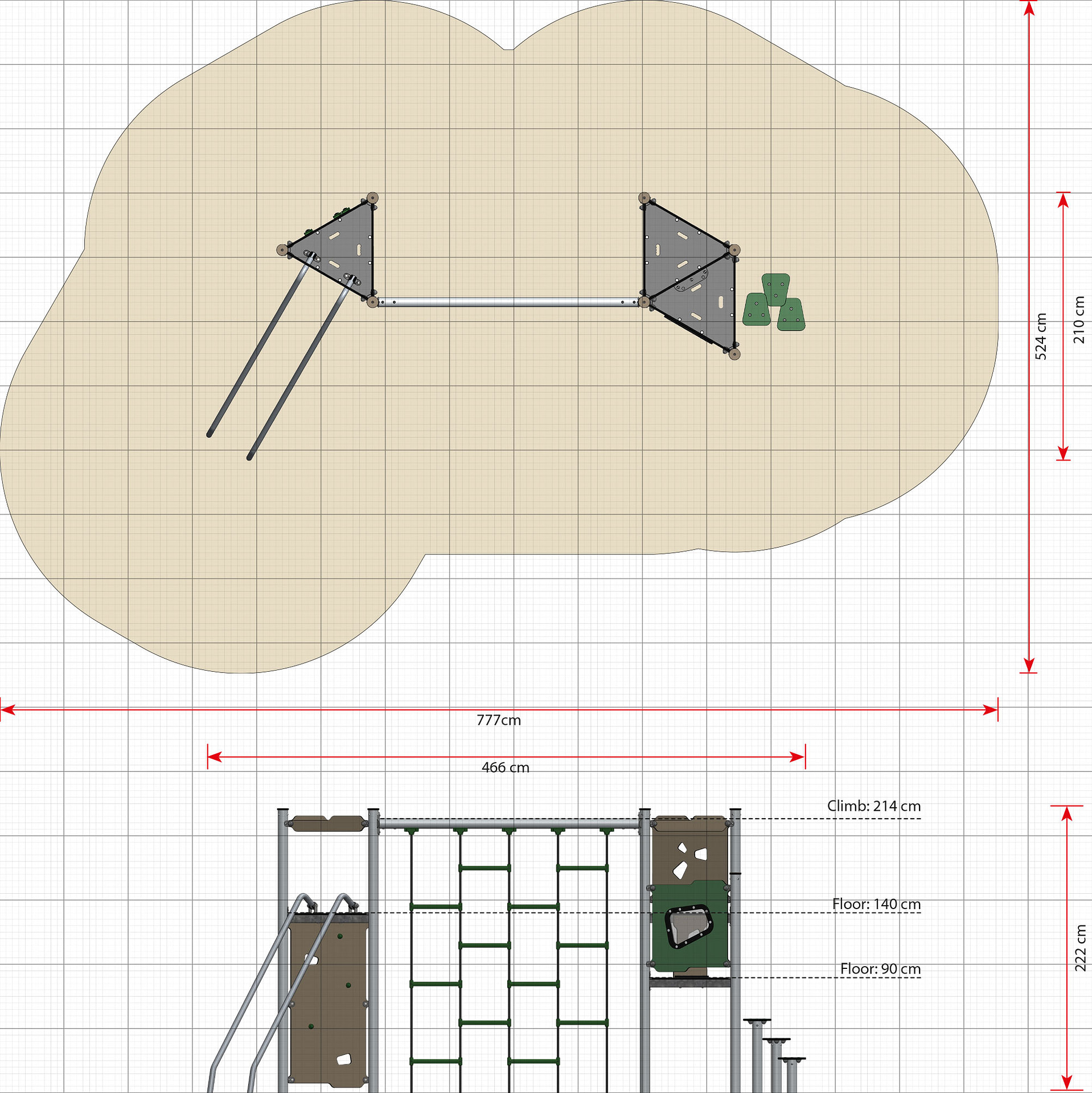 Lekställning Negor är utvecklad för lekplatser där barn behöver varierade utmaningar i samma produkt. Den kombinerar lekvärde med robust konstruktion och uppmuntrar till klättring, balans och social lek. Produkten passar väl i förskola, skola och parkmiljö där hög användning ställer krav på kvalitet och driftsäkerhet. Mått (L x B x H): 466 cm x 210 cm x 222 cm. Max fallhöjd: 214 cm. Rekommenderad ålder: Från 4 år.