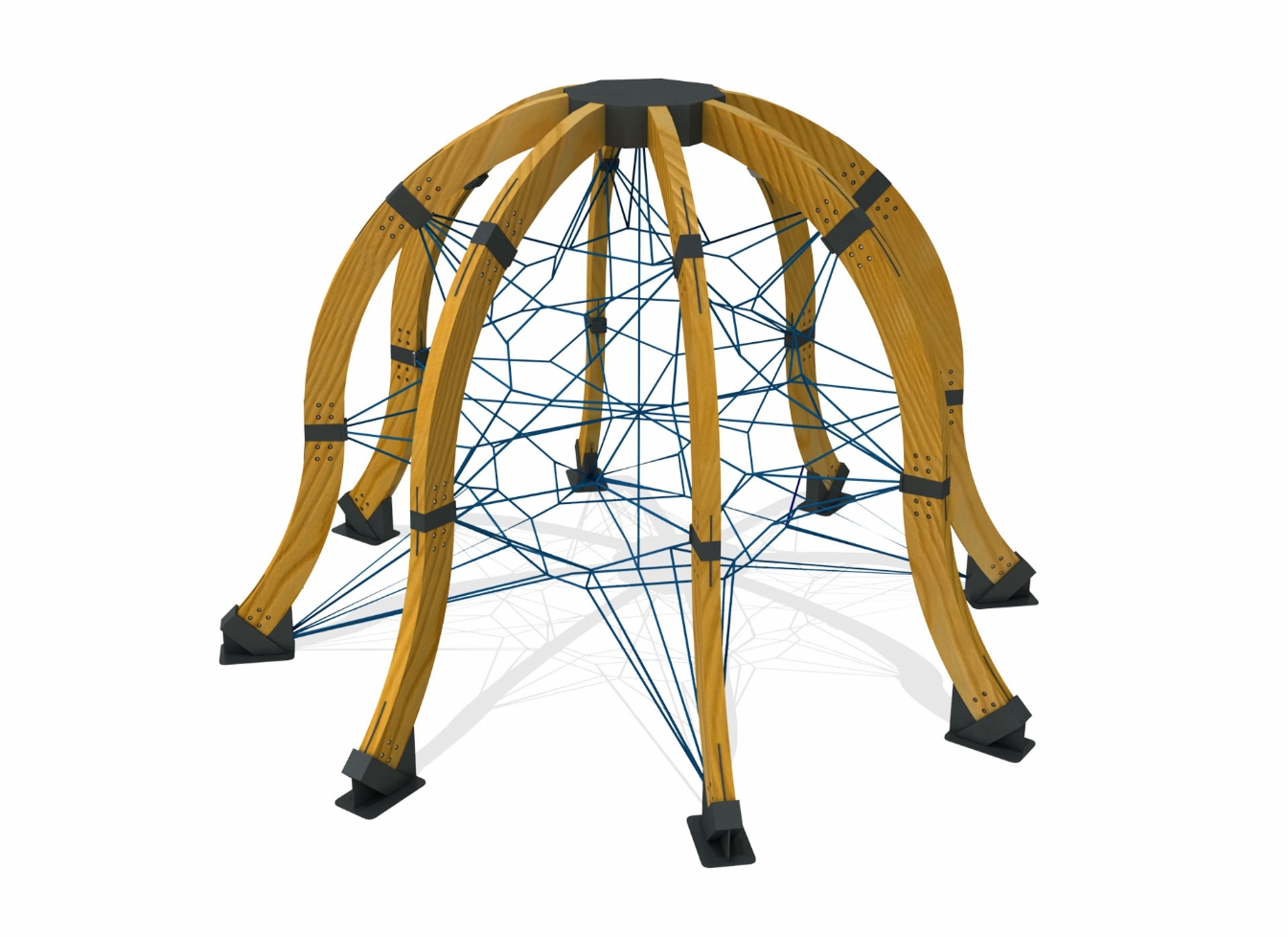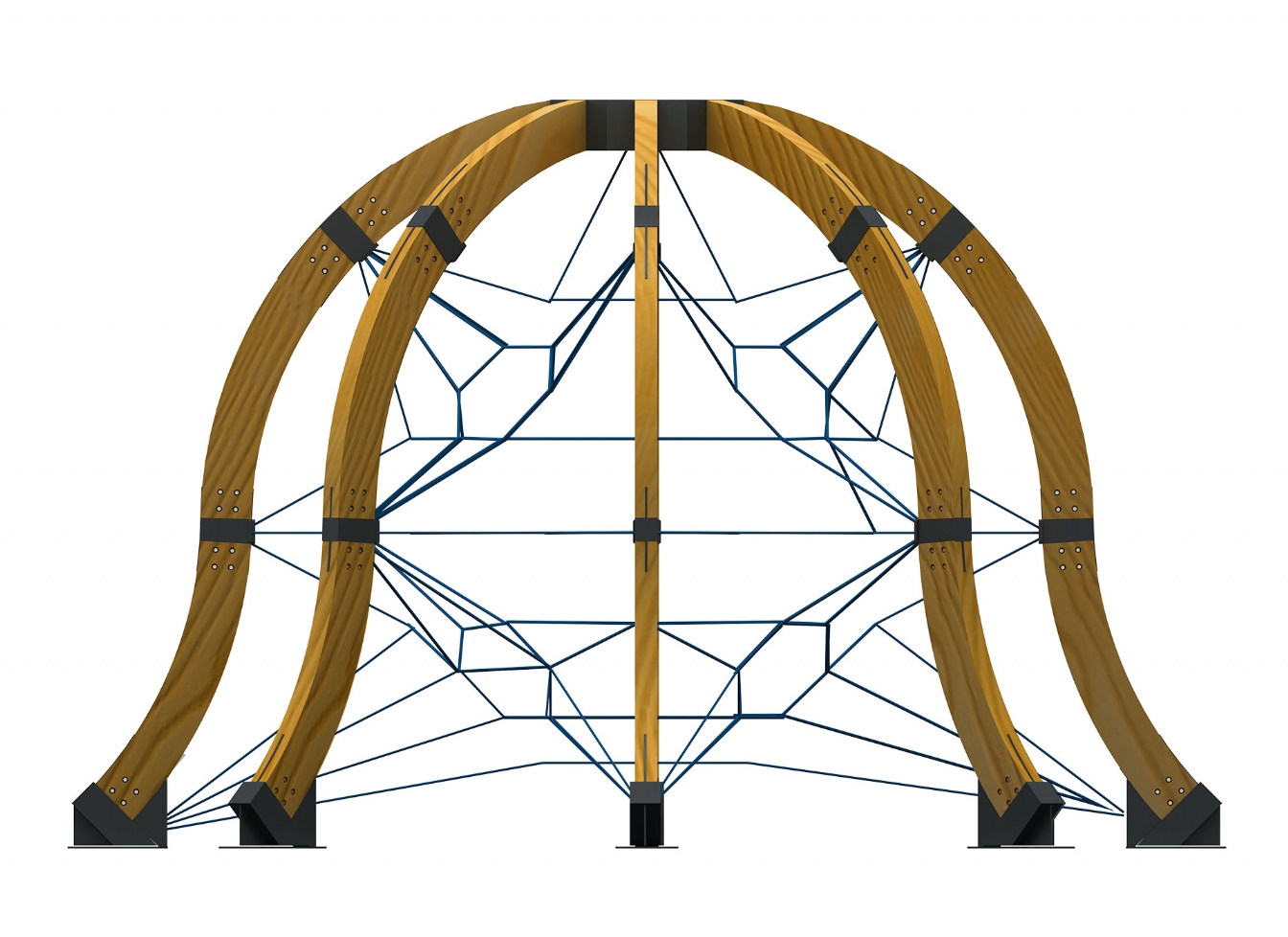 Lekställning Norari i metallprofil, polyeten och trä för offentlig miljö.