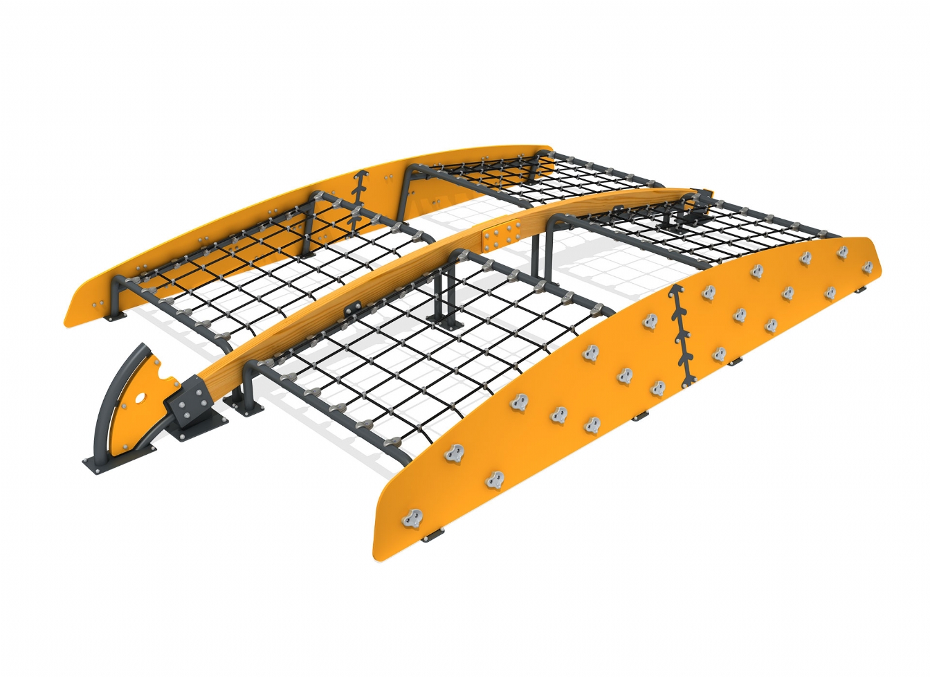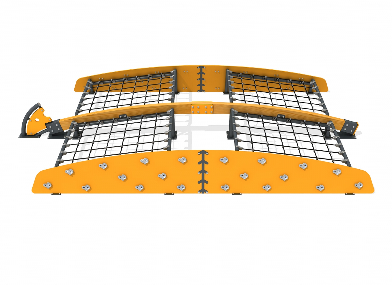 Lekställning Norera i metallprofil, polyeten och trä för offentlig miljö.