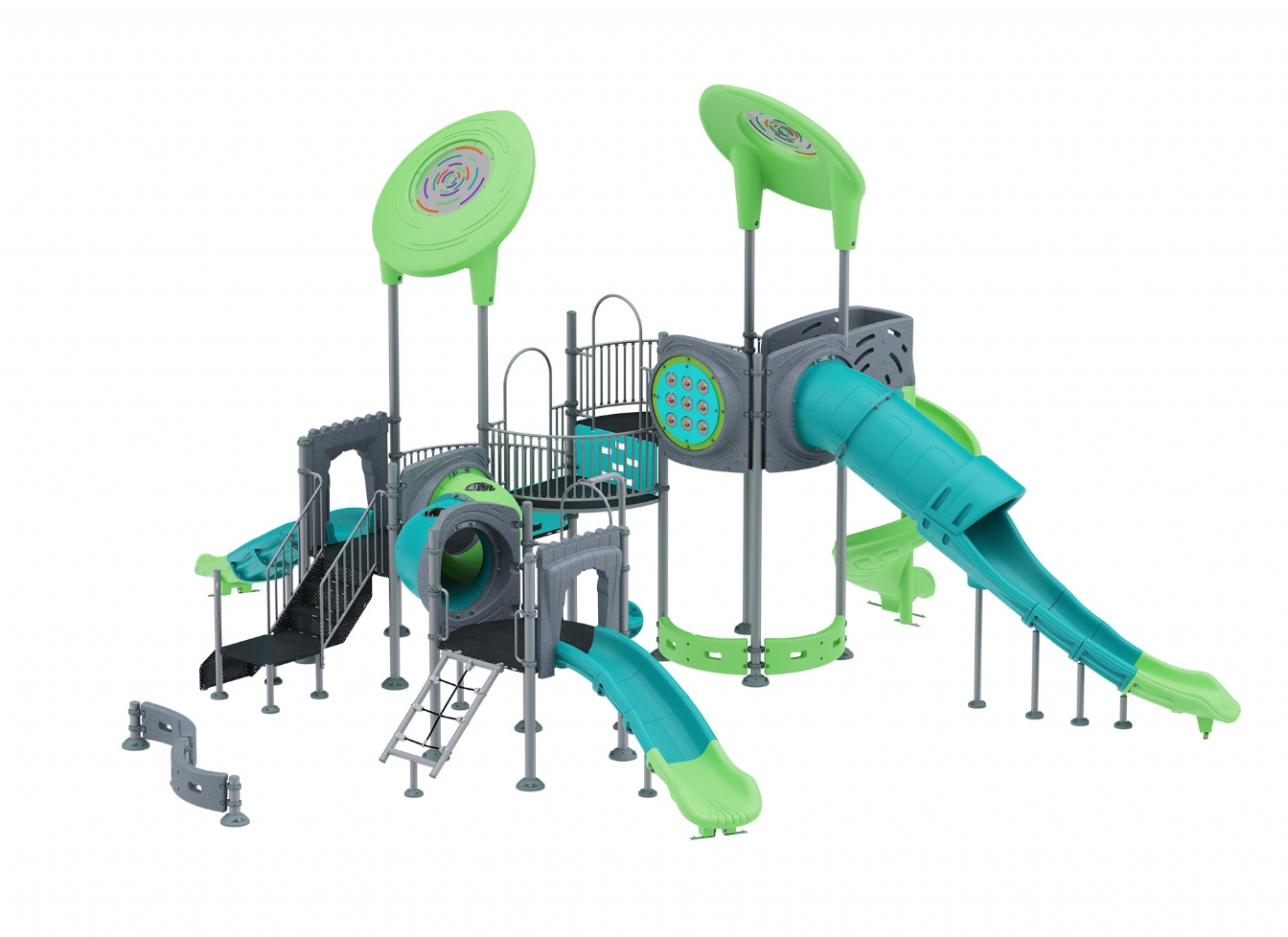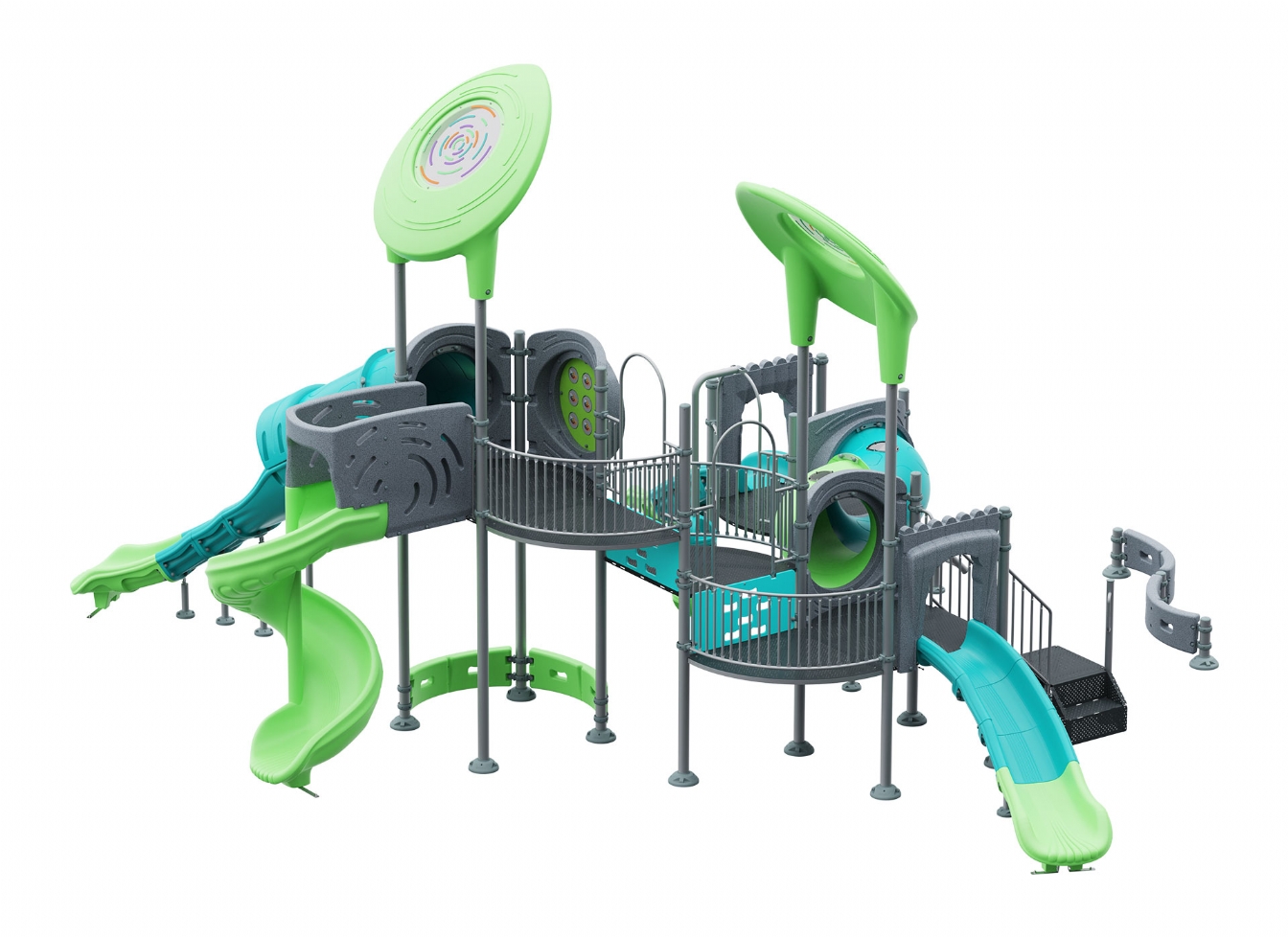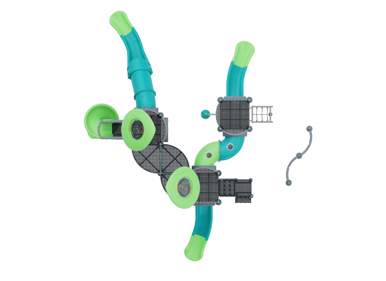 Lekställning Noril i metallprofil, polykarbonat och marinplywood för offentlig miljö.