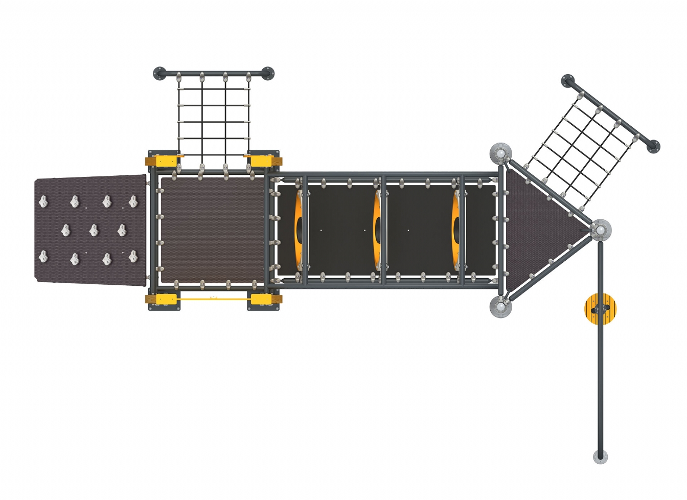 Lekställning Norina är utvecklad för lekplatser, skolor, förskolor och andra offentliga utemiljöer. Produkten har bredd 673 cm, djup 428 cm och höjd 310 cm. Specifikationen omfattar säkerhetszon L 974 x W 723. Utförandet i metallprofil, polyeten, trä och marinplywood pane ger en tålig konstruktion som lämpar sig för återkommande användning i krävande miljöer. Den är anpassad för upp till 12 barn och rekommenderad ålder 6-12.