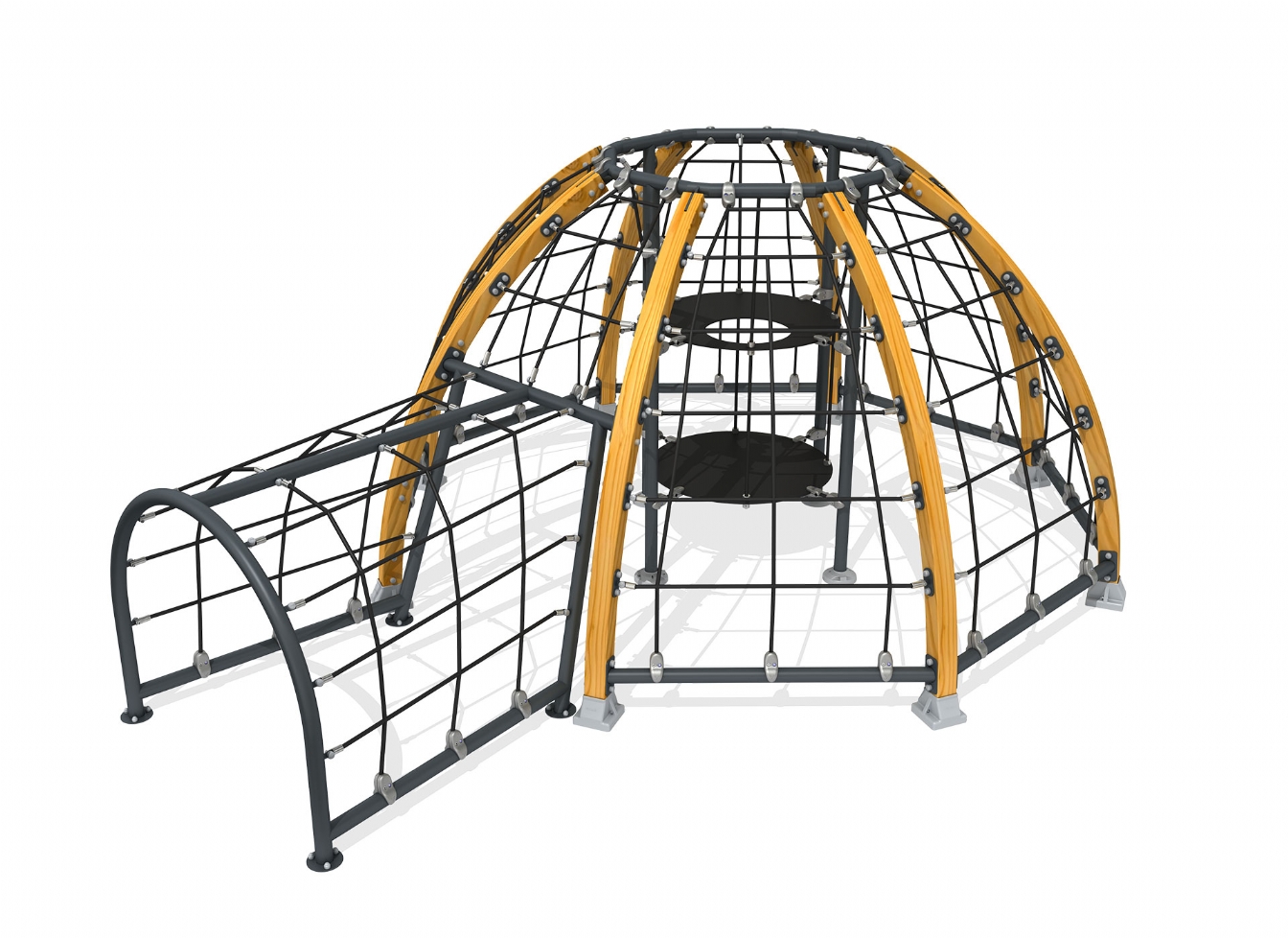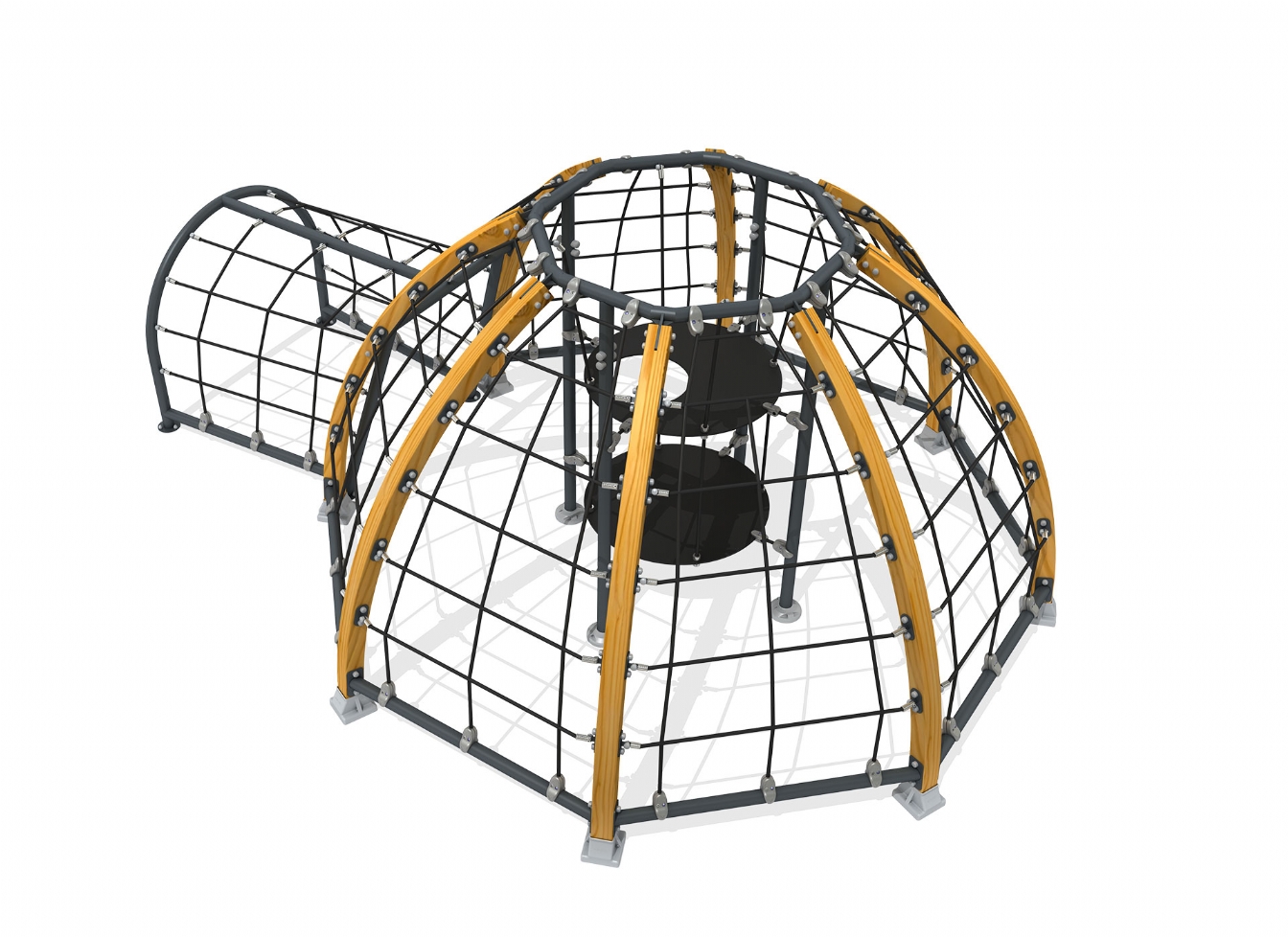 Lekställning Norola i metallprofil, polyeten och trä för offentlig miljö.