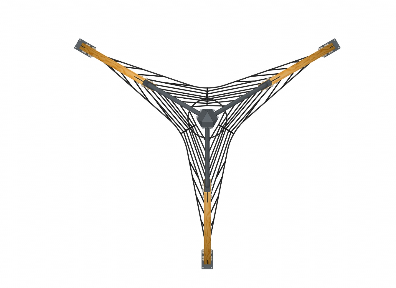 Lekställning Noruno i metallprofil, polyeten och trä för offentlig miljö.